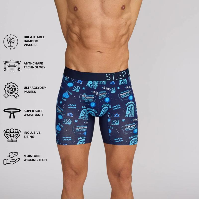 5. Step One Men's Boxer Brief - Aquarius, Anti-Chafe, Breathable Bamboo Fabric, UltraGlyde Panels, Hidden Elastic Pouch, Premium Underwear, Athletic Daily wear