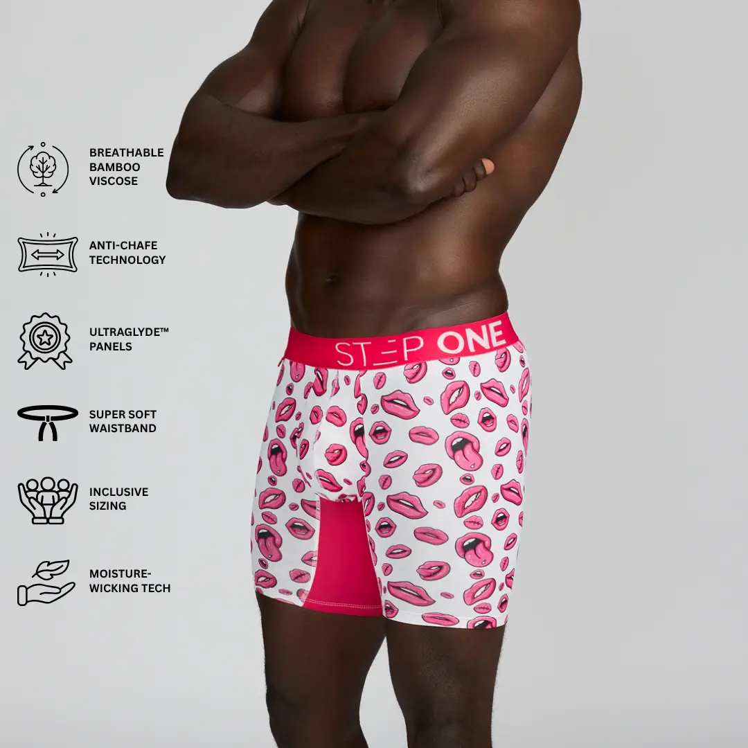 Step One Men's Boxer Brief - Luscious Lips, Anti-Chafe, Breathable Bamboo Fabric, UltraGlyde Panels, Hidden Elastic Pouch, Premium Underwear, Athletic Daily wear
