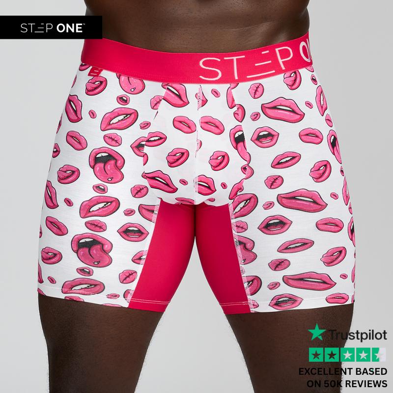 5. Step One Men's Boxer Brief - Luscious Lips, Anti-Chafe, Breathable Bamboo Fabric, UltraGlyde Panels, Hidden Elastic Pouch, Premium Underwear, Athletic Daily wear