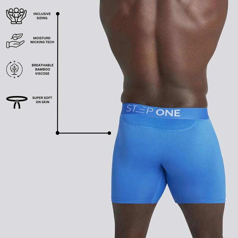 5. Step One Men's Boxer Brief - Sapphires, Anti-Chafe, Breathable Bamboo Fabric, UltraGlyde Panels, Hidden Elastic Pouch, Premium Underwear, Athletic Daily wear