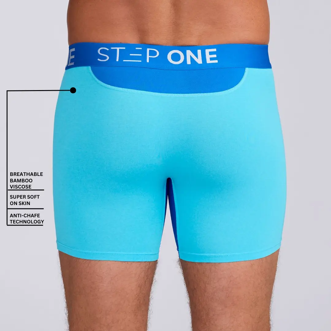 5. Step One Men's Boxer Brief - Wave Riders, Anti-Chafe, Breathable Bamboo Fabric, UltraGlyde Panels, Hidden Elastic Pouch, Premium Underwear, Athletic Daily wear