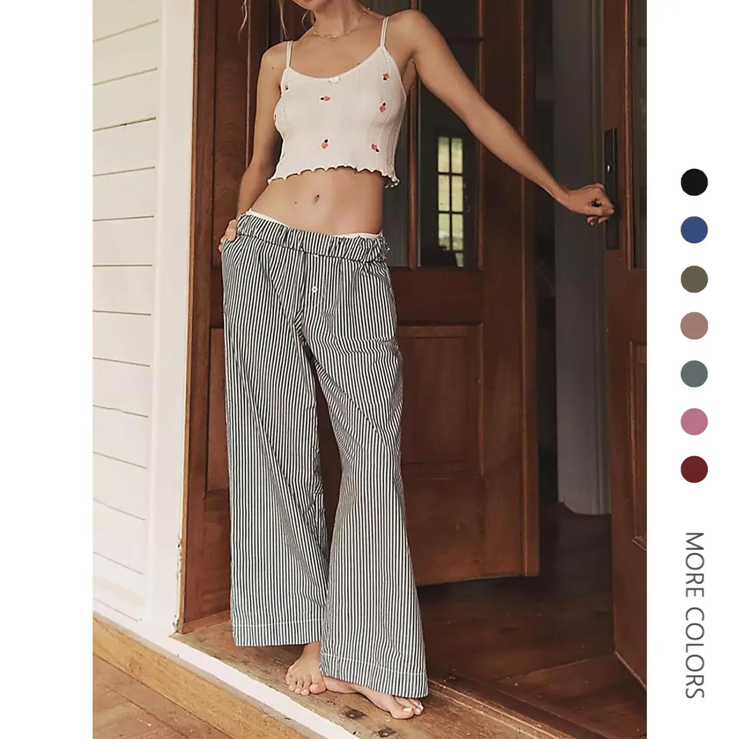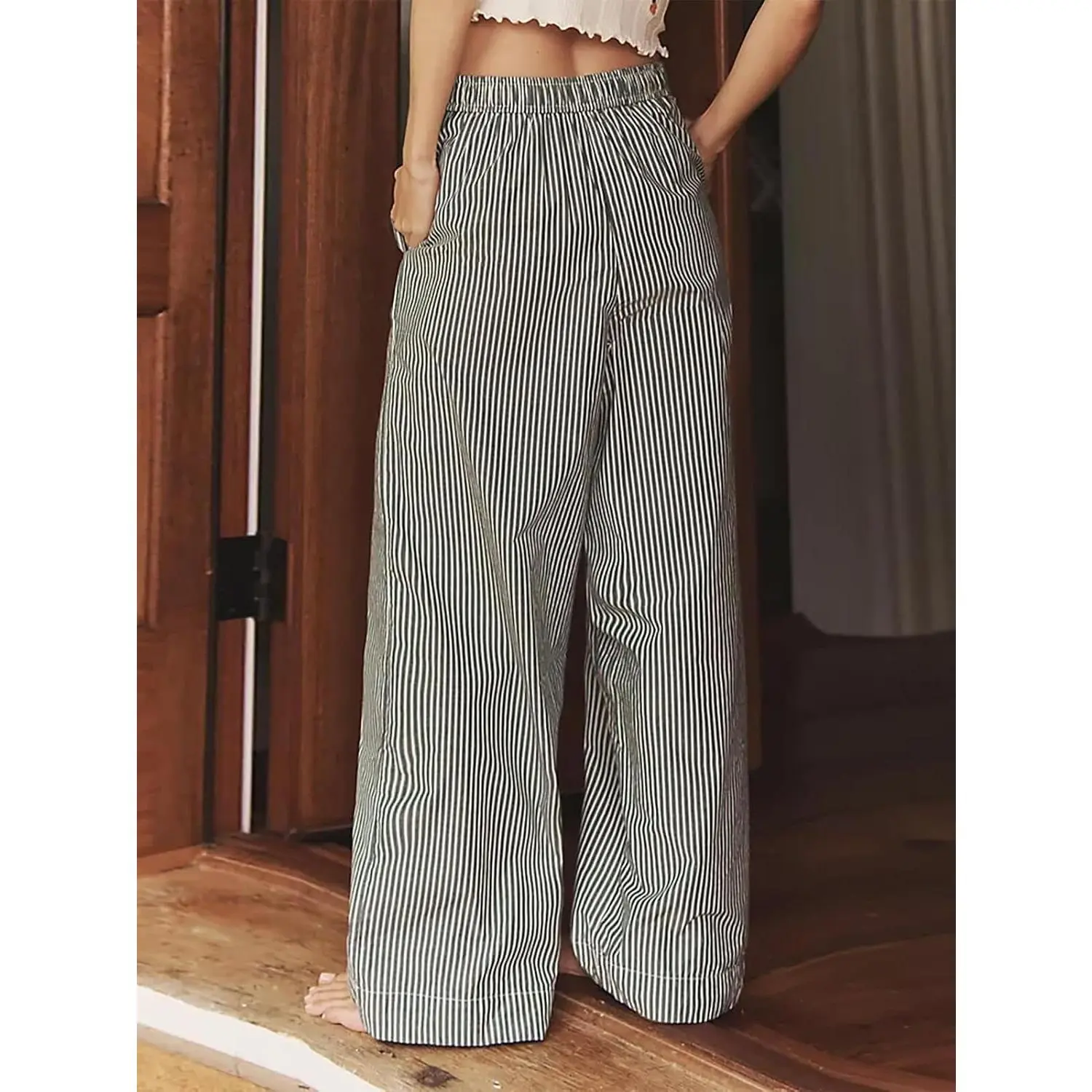 Danedvi Womens Boxer Pants Striped Lounge Pajama Bottoms Elastic High Waisted Wide Leg Trousers with Pockets Black FabricDanedvi Womens Boxer Pants Striped Lounge Pajama Bottoms Elastic High Waisted Wide Leg Trousers with Pockets Black FabricDanedvi Womens Boxer Pants Striped Lounge Pajama Bottoms Elastic High Waisted Wide Leg Trousers with Pockets Black Fabric