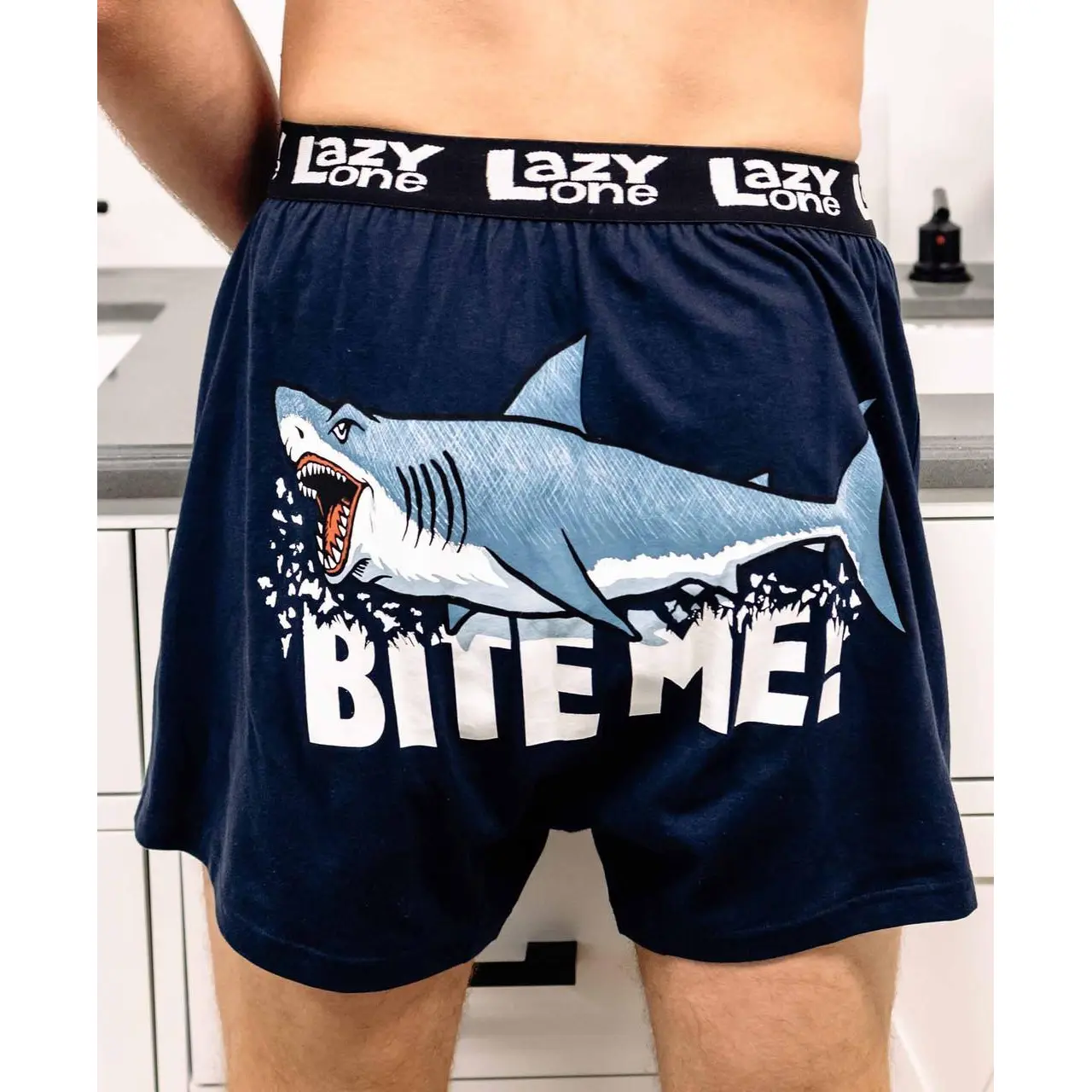 HUMOROUS UNDERWEAR: Go to bed happy with these comical shark boxer shorts! They're sure to make you laugh with their clever puns. Choose from several different styles, including ones with animals.