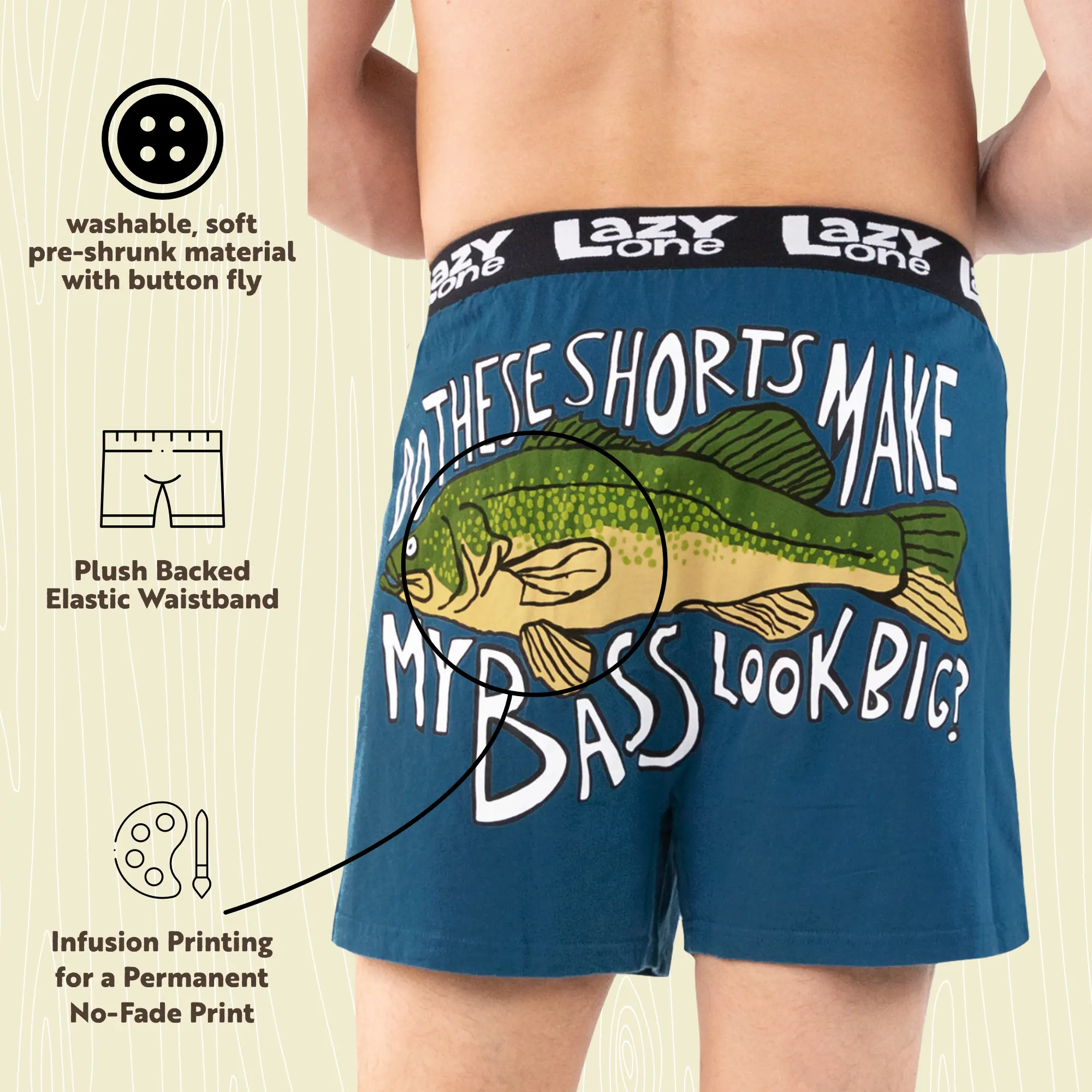 ELASTIC WAISTBAND: Our punny boxer shorts feature an soft exposed elastic waist for a comfortable fit. They also have a button fly.