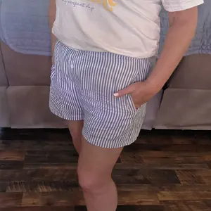 I’m between a 12-14 and 5’10 so I got an XL for length and to be a little roomy. They’re perfectly oversized, but tall girls be aware they are on the shorter end. Still long enough to wear out though. I figured they wouldn’t be double lined, and they aren’t. However the fabric is pretty thick and nicely structured. If you have a curvy butt/hips and are self conscious about that, 1 don’t be you gorgeous babe, and 2.be aware the pockets hit right at the largest part of the hip area. Oh and they have pockets! Functional pockets. All in all very cute, and will be perf for summer.