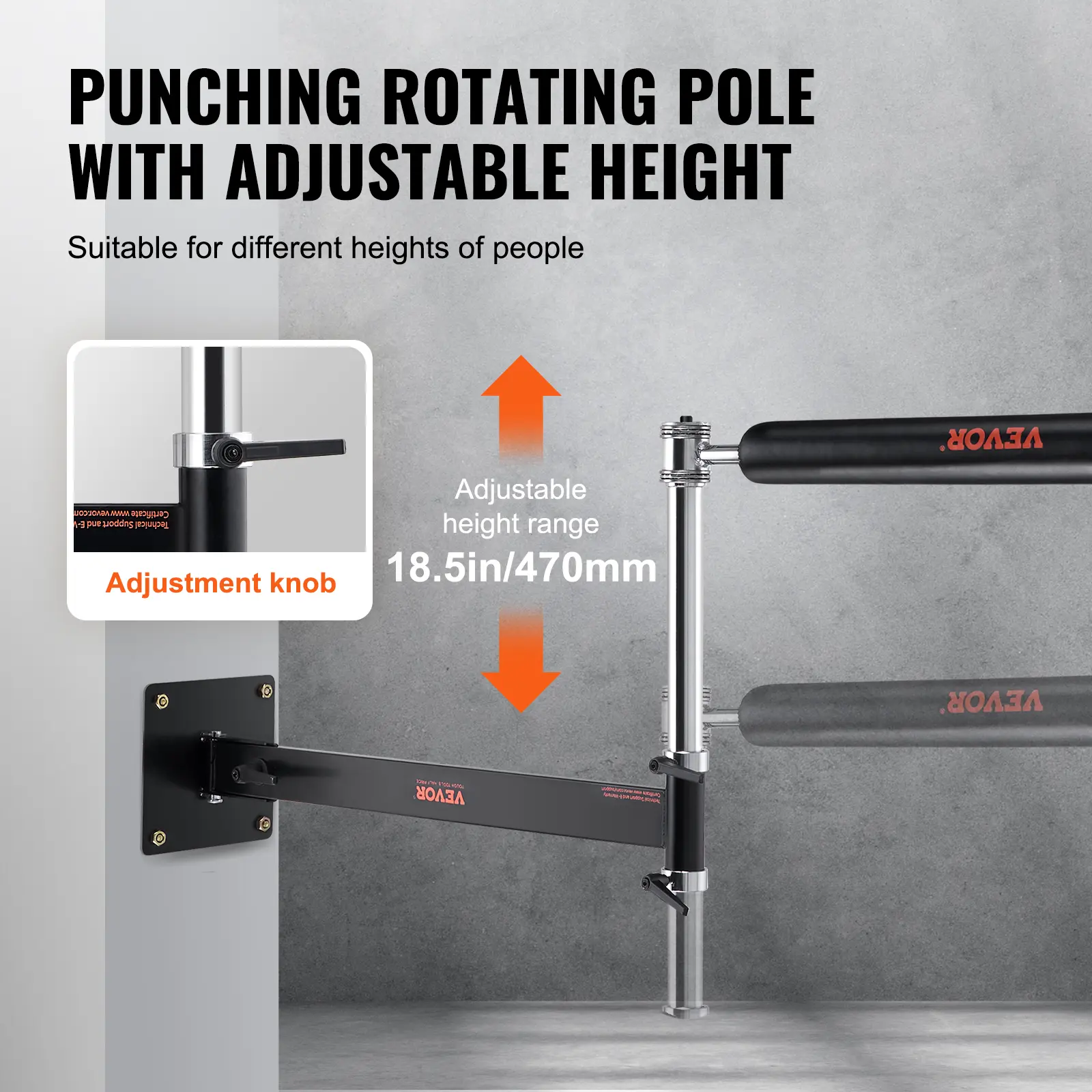 • Wall-mounted Design: The boxing spinning bar features a wall-mountable design, requiring only screws to securely install the base on the wall. It boasts strong load-bearing capacity and is unlikely to fall off, making punching more stable. It utilizes an upgraded top reinforcement spring, enabling the punching ball to rebound faster.