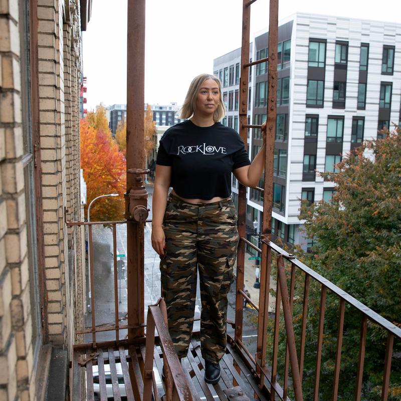 | RockLove Boxy Crop Tee Size Chart | | | | | || | S | M | L | XL | 2XL || Body Length Back | 19 1/2 | 20 3/8 | 22 | 23 3/4 | 24 3/4 || Chest Width (Laid Flat) | 20 1/4 | 21 3/4 | 23 3/4 | 25 1/2 | 27 1/2 |