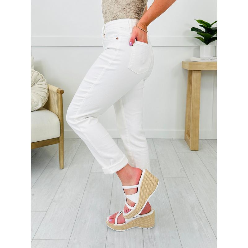·Incredible Stretch. Sometimes white denim can be stiff due to the dying process but Judy Blue has perfected the fabrication on these jeans. They are a boyfriend fit, which is a loser and more relaxed fit making them more comfortable than any pair of white jeans you've ever put on.