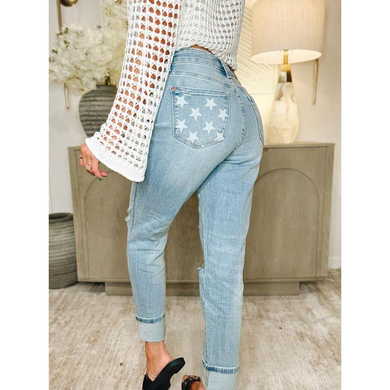 Judy Blue Star Struck Mid Rise Cuff Boyfriend Jeans *JB