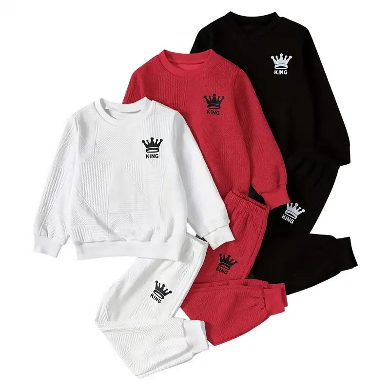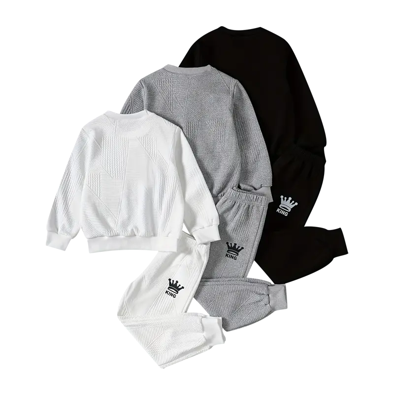 ✨ This 6-piece set includes a casual simple sweatshirt and sweatpants, perfect for boys. The sweatshirt features a stylish crown print, adding elegance. Ideal for everyday wear, it combines comfort with fashion. The set is economical, making it a great choice for parents.