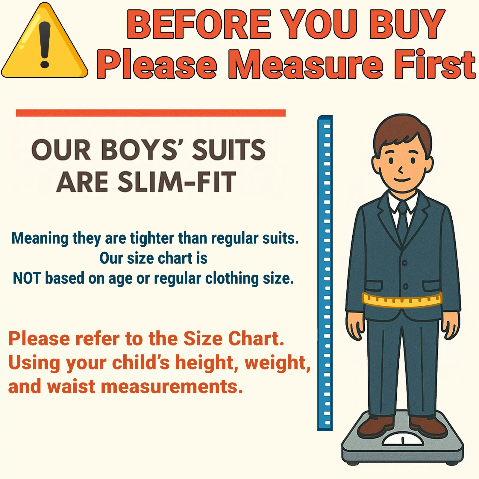 Note: For the best fit, please refer to the Size Chart. Use your child’s height, weight, and waist measurements.