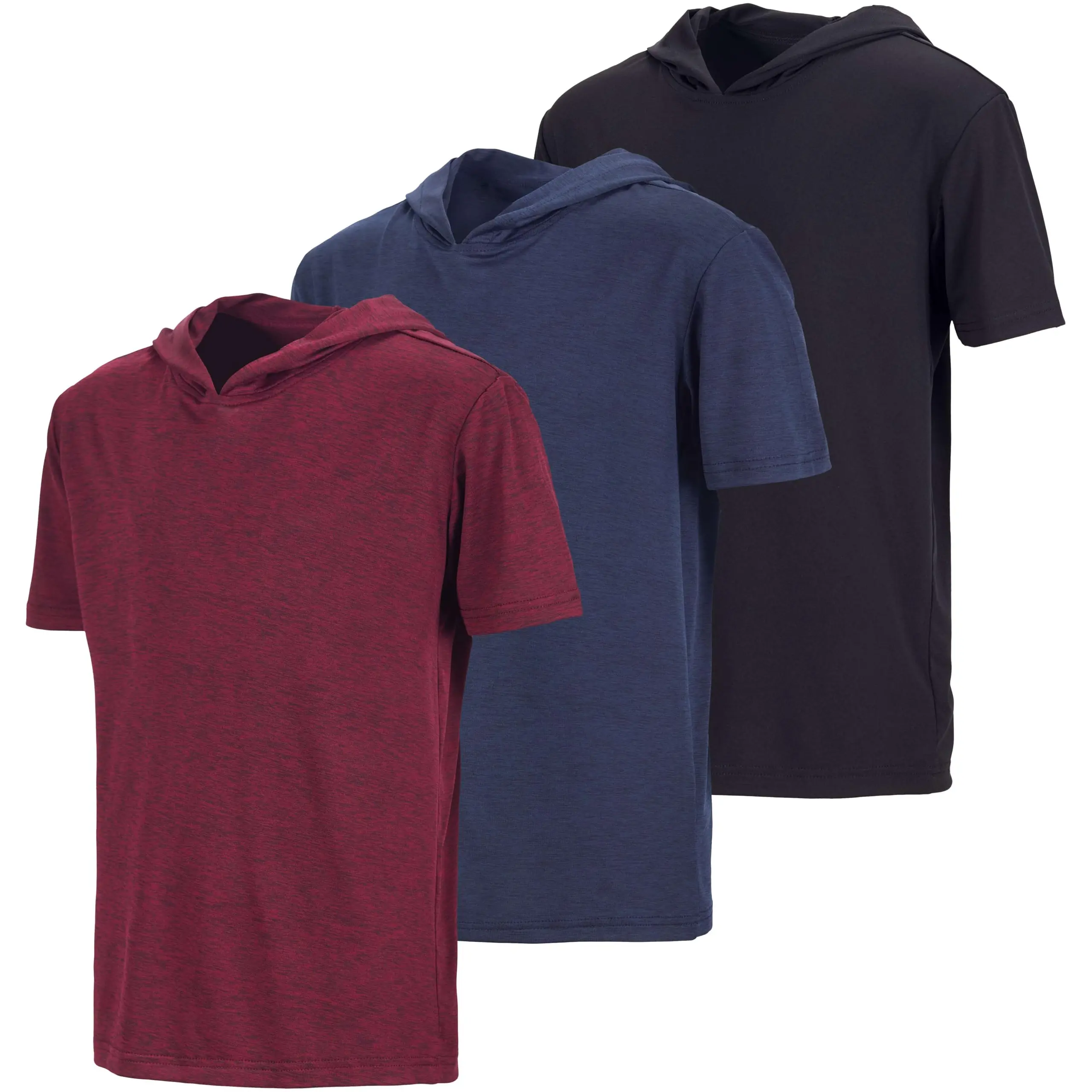 Real Essentials 3 Pack: Boys Dry-Fit Youth Teen Active Athletic Short Sleeve Workout Hoodie - Hooded Pullover Shirts