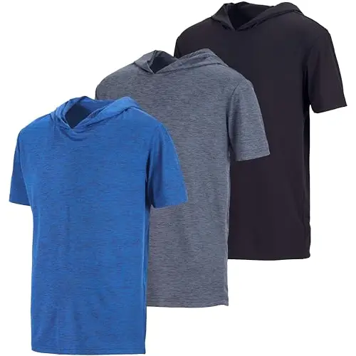 5. Real Essentials 3 Pack: Boys Dry-Fit Youth Teen Active Athletic Short Sleeve Workout Hoodie - Hooded Pullover Shirts