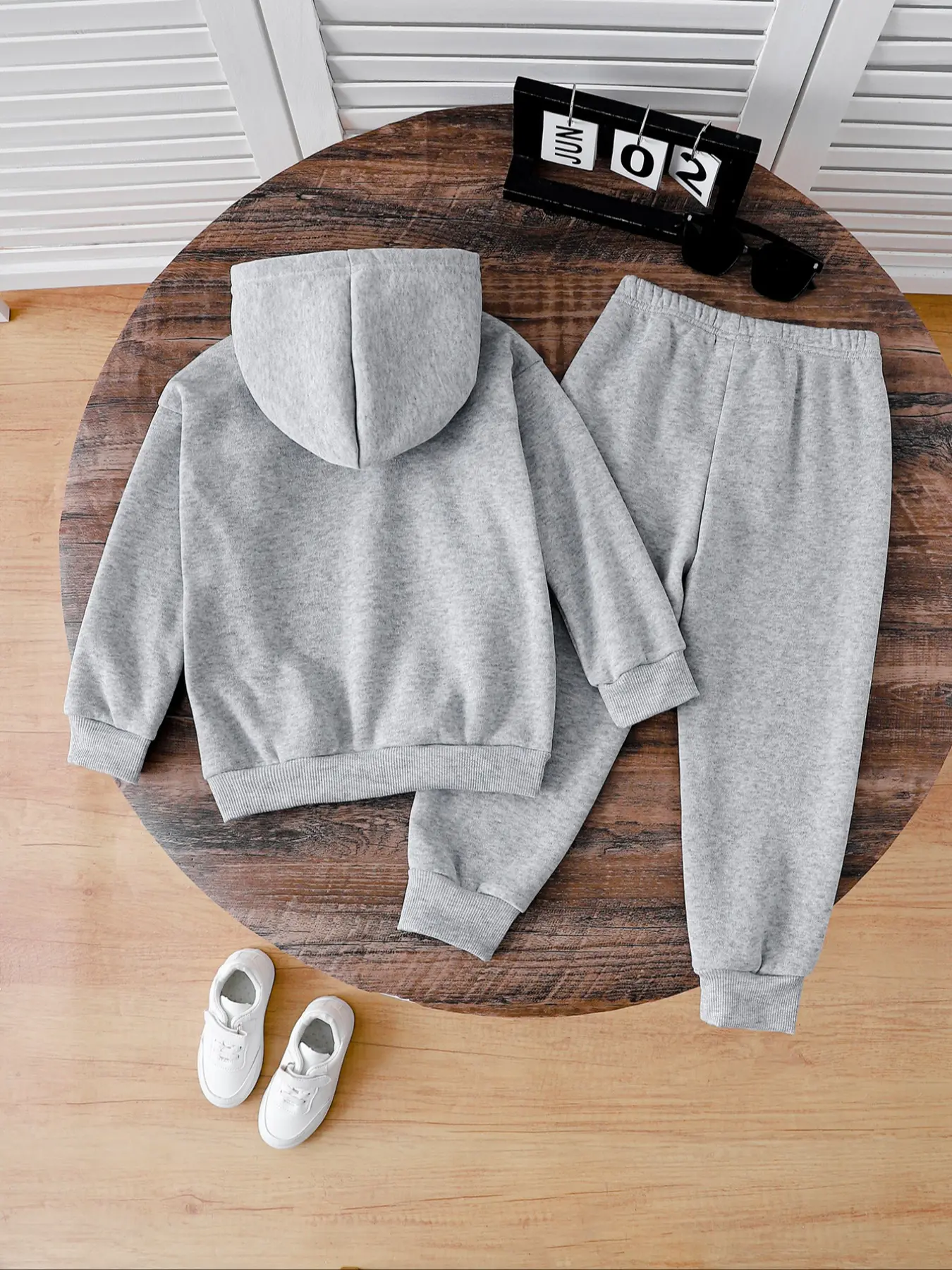 Boys' Fall Winter Casual Hoodie & Jogger Pants Set, Thick Fabric Fitted Design, Warm Sports Style for Kids Ages 6-8 Years Old, Clothes Kids