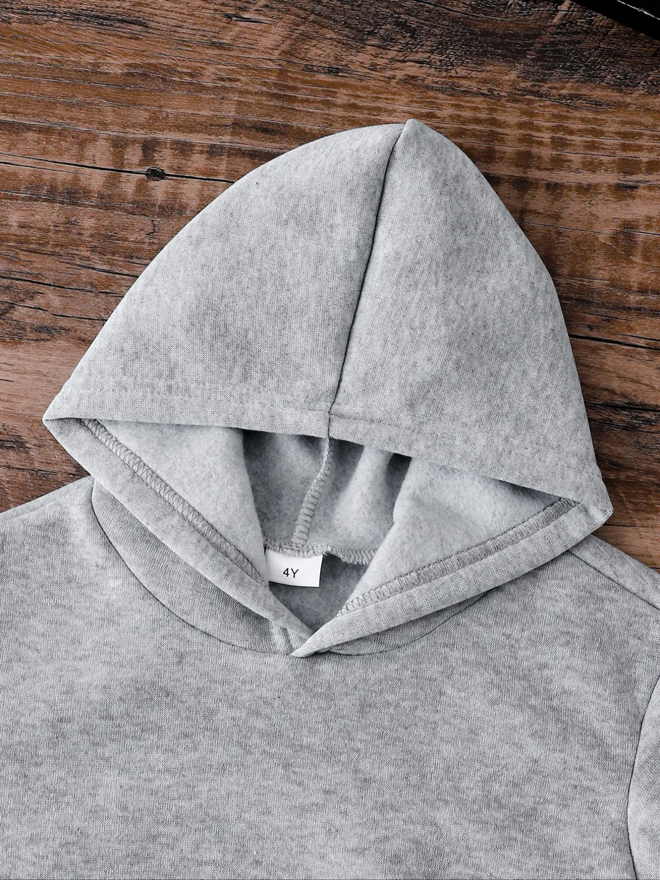 【Sporty Aesthetic】: Features a trendy lettered hoody that showcases an active, sporty vibe for young boys.