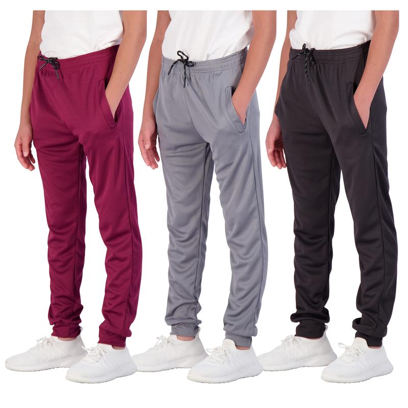Real Essentials 3 Pack: Boy's Mesh Active Athletic Casual Jogger Sweatpants with Pockets