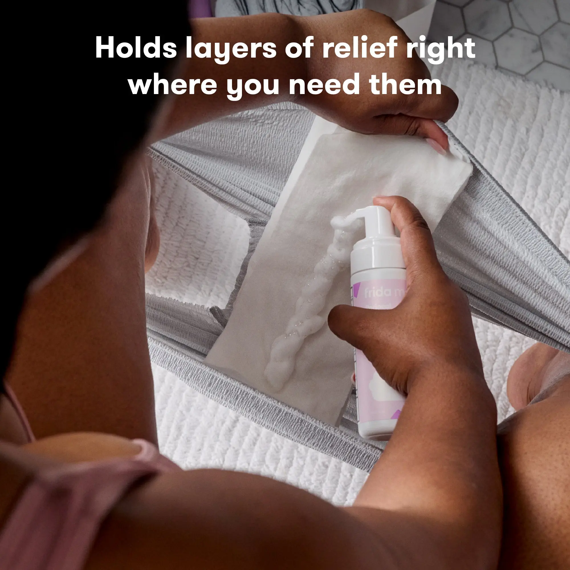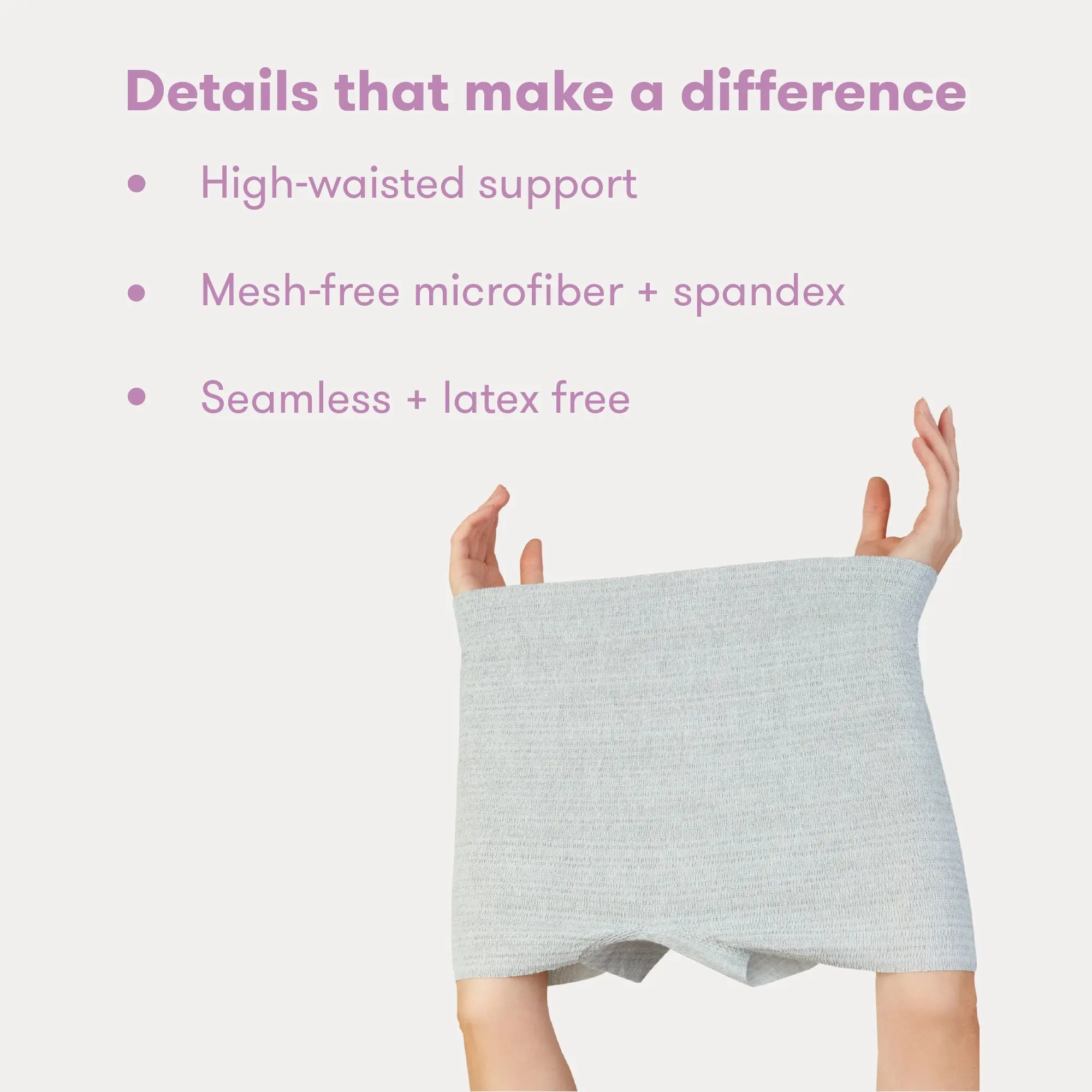 Mess-free recovery wear that stretches even more than you have. Soft, seamless and breathable to keep pads (and everything else) in place, without squeezing or pulling.