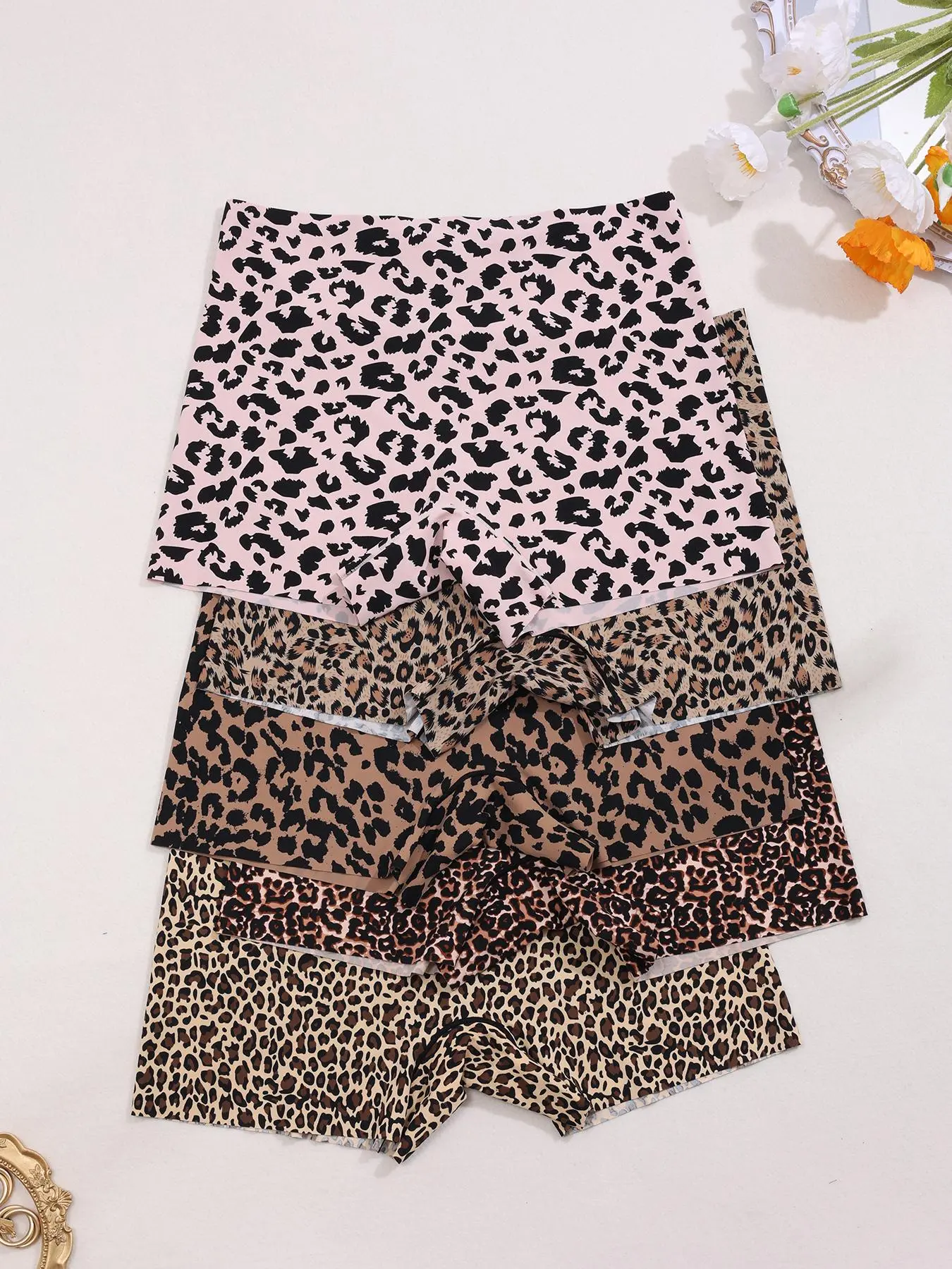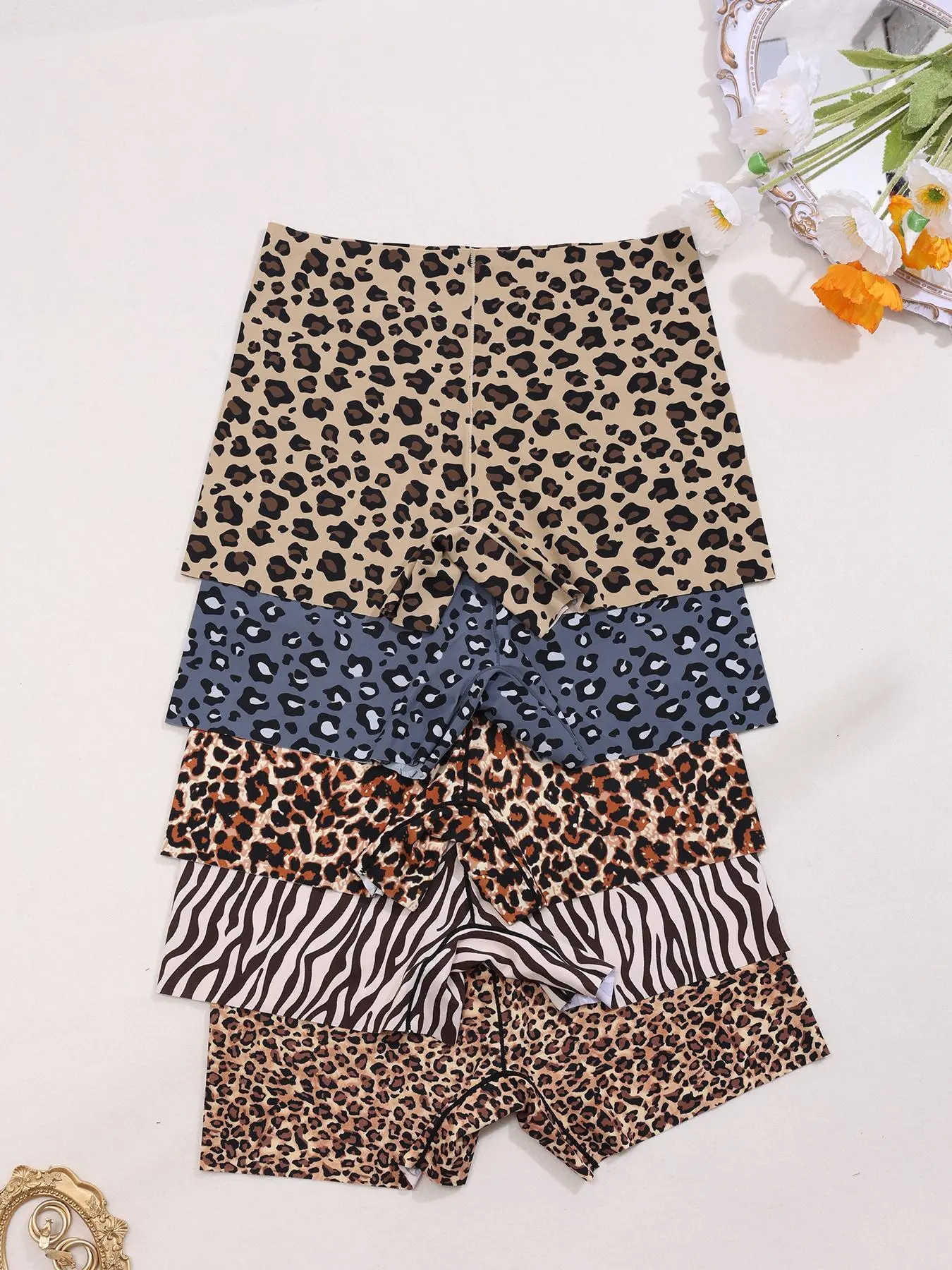 Rah... rah. Love these Leopard Women Boyshorts. Fabric is so soft and Satiny feeling . Not sure what the blend is but quite comfortable yet lite cling making your feel support where flattery is needed. Dbl lined crouch is a nice feature as well. Great price too.