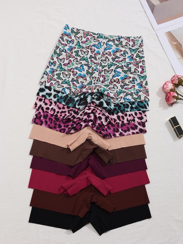10Pcs One-piece underpants for women without rolling, naked outside, slim mid-waist ice silk traceless underpants, Underwear