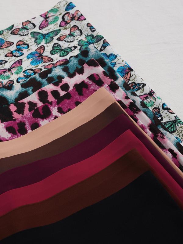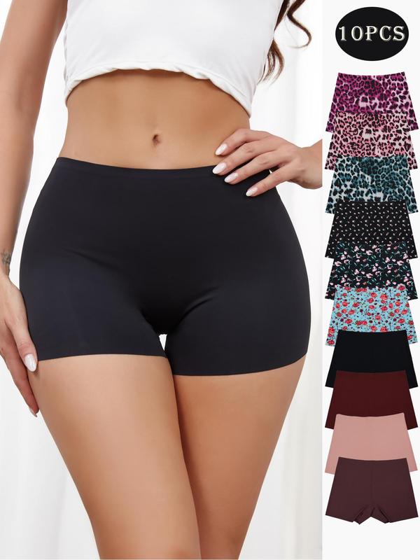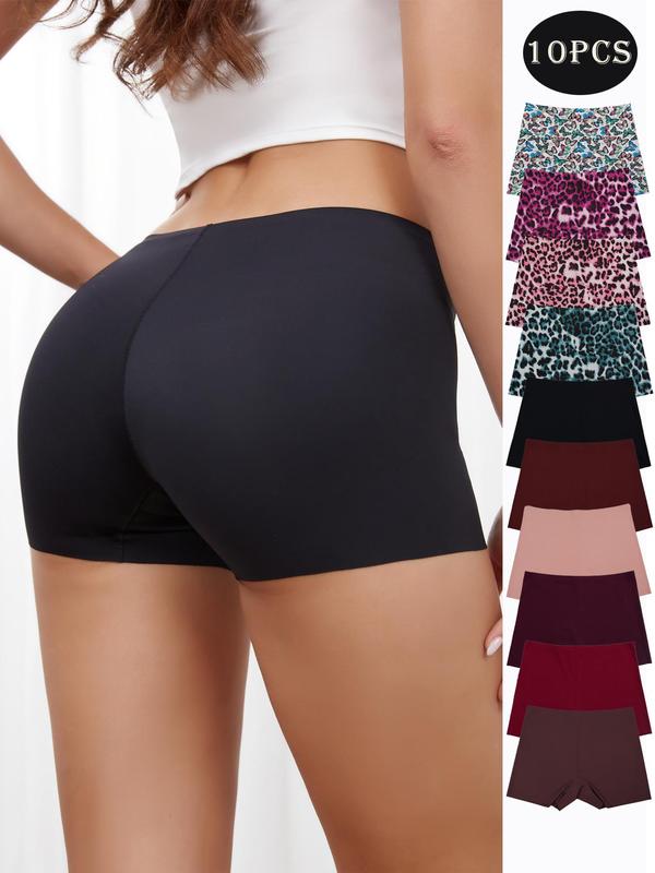 5. 10Pcs One-piece underpants for women without rolling, naked outside, slim mid-waist ice silk traceless underpants, Underwear