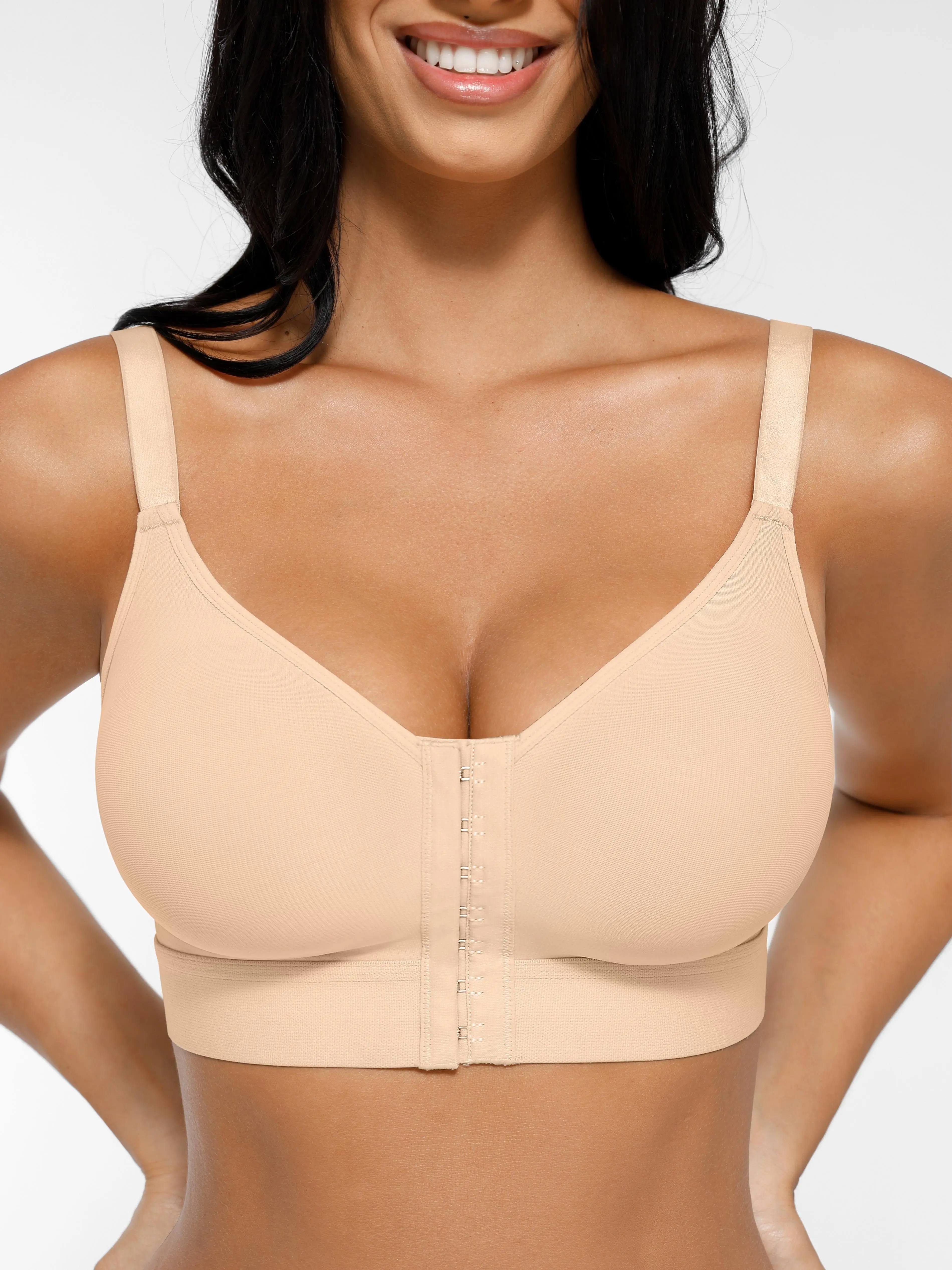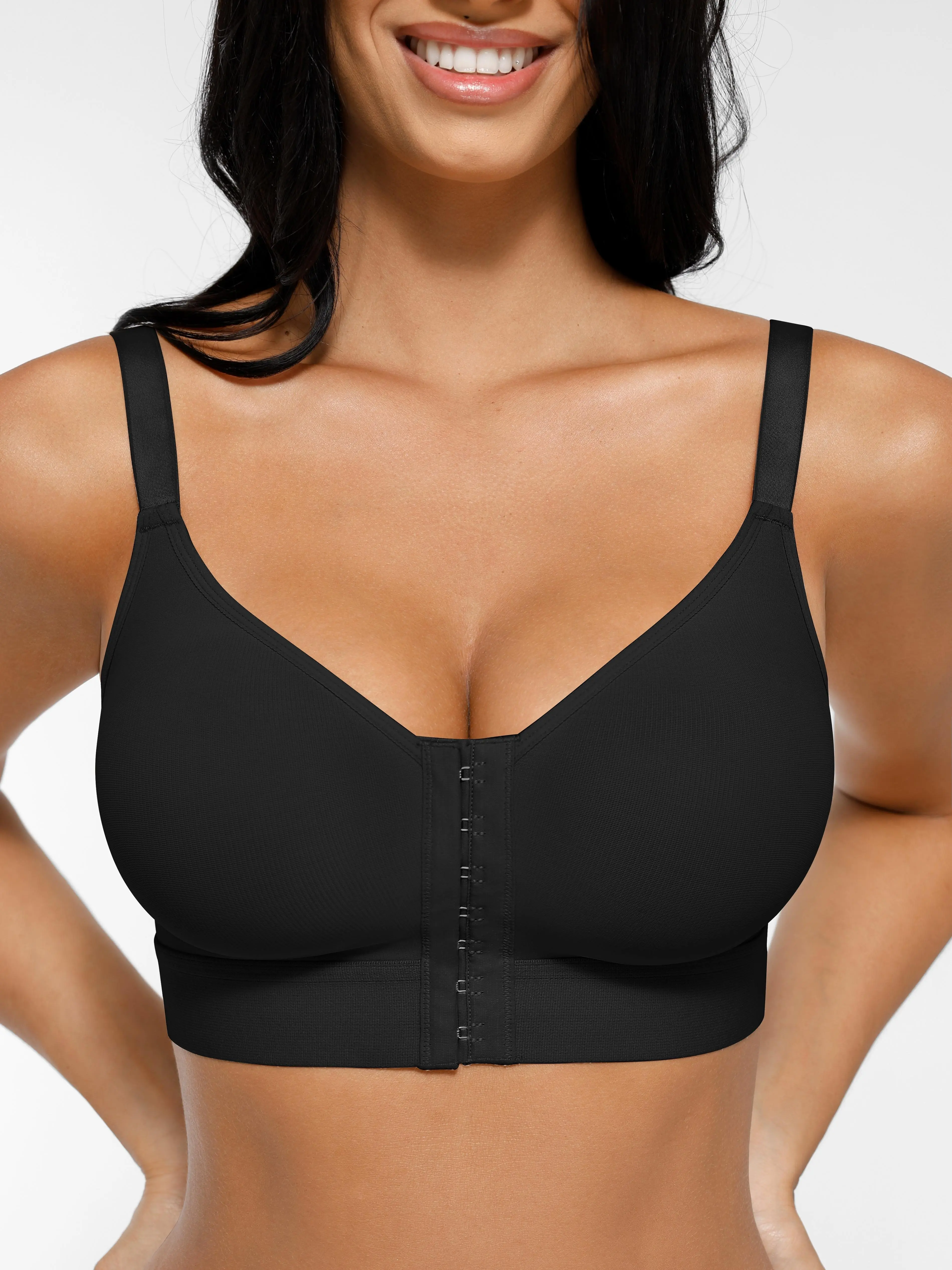 ·Front Closure Bra: The bra features a front closure design with three rows of hooks for easy wear and removal.