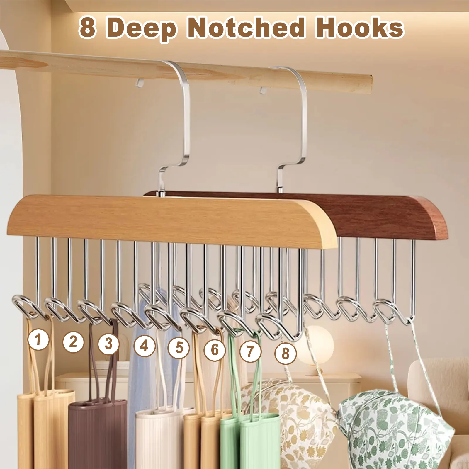 ·8 Durable Hooks – Holds multiple bras, camisoles, ties, scarves, or strappy tops in one place.