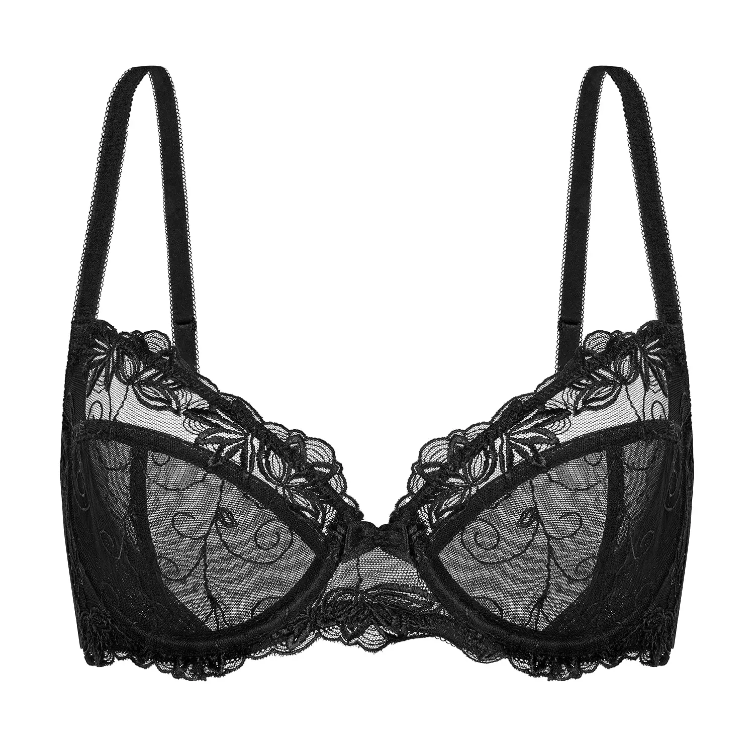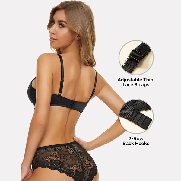 ·Full coverage semi-sheer unlined cups fit and look nice; Delicated bow-knot at the center of the bra.