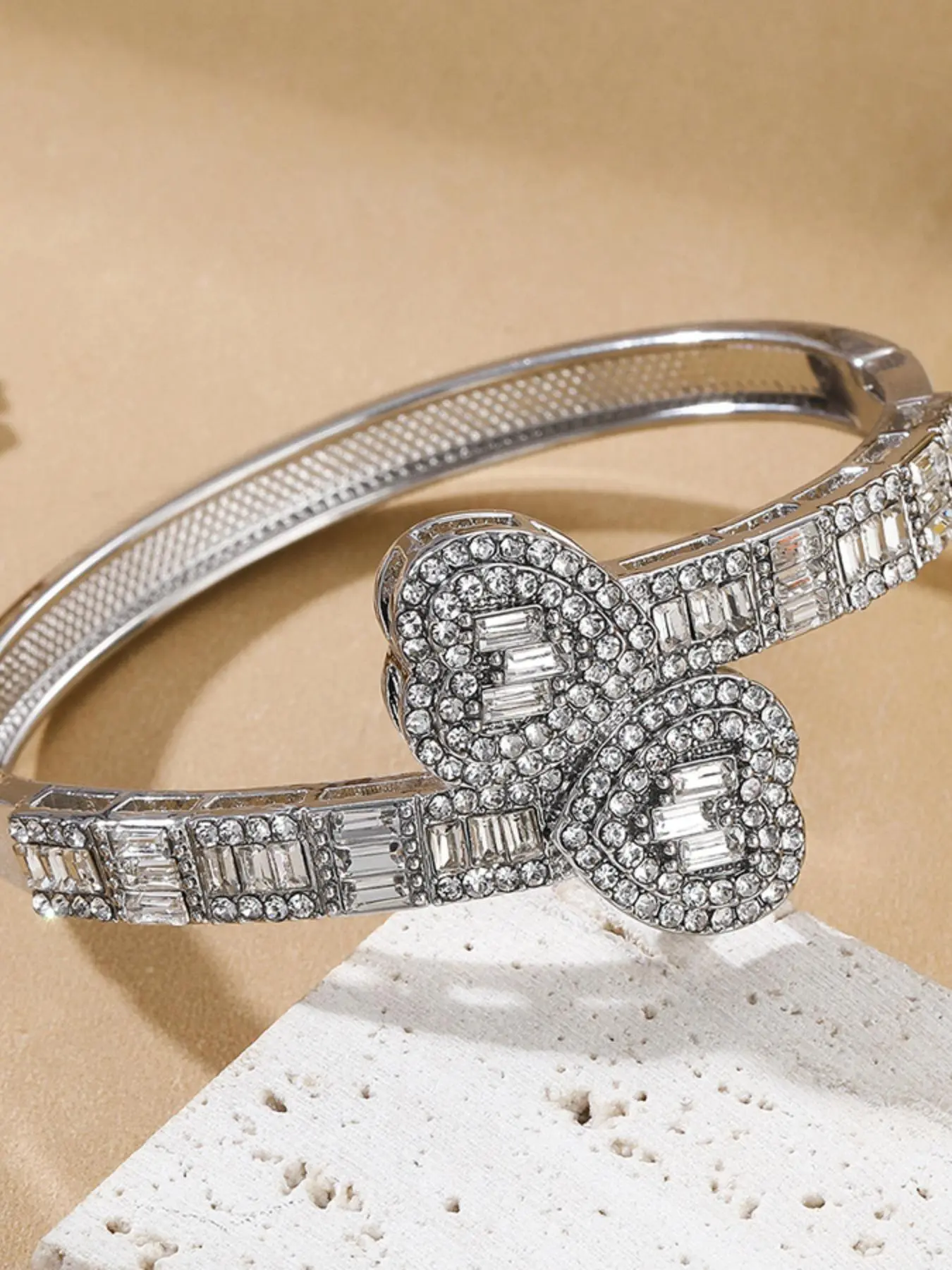 Feels very cheap like plastic. The clamp to close the bracelet is on the side and not where the hearts are, it’s also very noticeable.