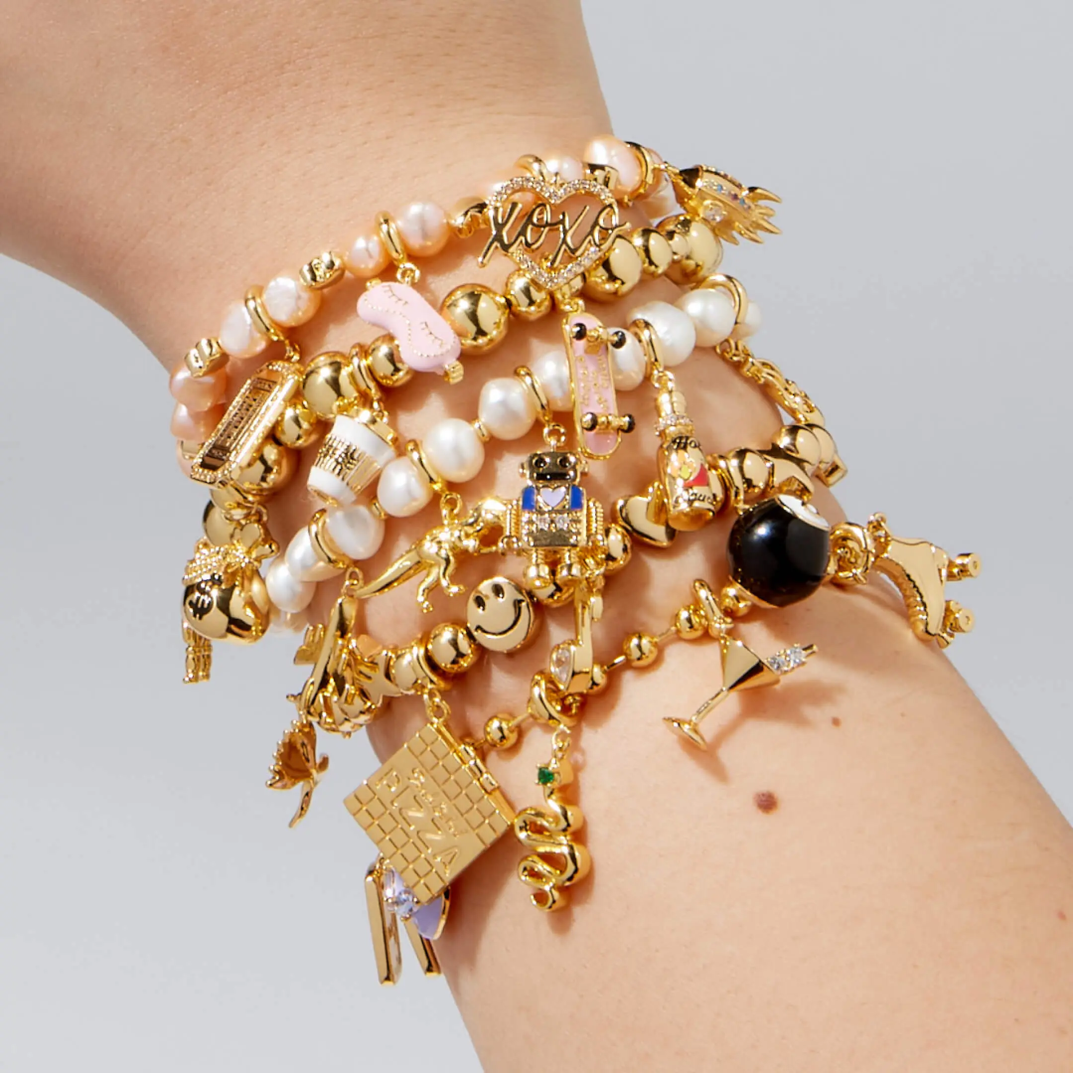I love this bracelet so much. It gives my stack a pop of color. Every time I look at it I am happy seeing the playfulness of the smiley face. I have not yet put charms on it - so you can wear it with or without.