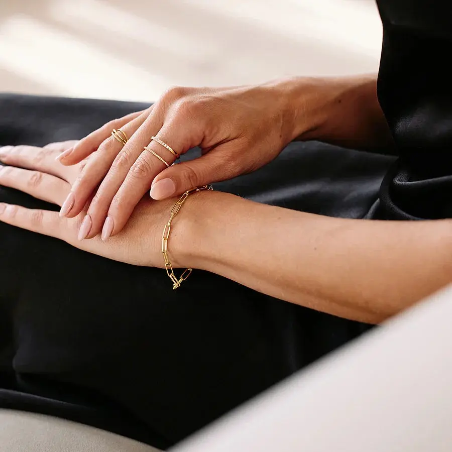 This @Mint and Lily bracelet is so cute! #bracelet #looksforless #jewelry #mintandlily #accessories #bracelets #gold #affordablejewelry #paperclipbracelet