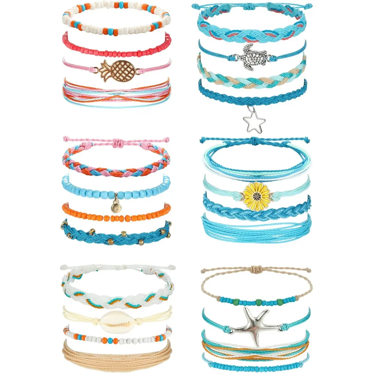 ·Beach String Bracelet:Contains 24 pieces beach string bracelet anklets in different styles as shown in the picture.Incorporating various popular elements,enough to wear and share with your family or friends