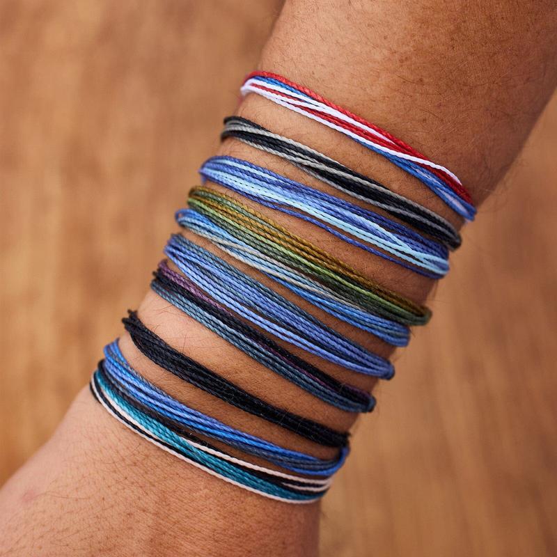 Save 31% on bracelets by purchasing our Men's Surf & Skate Friendship Pack ($70 value), featuring 10 of our top selling originals! Wear them all together, mix and match your favorite combinations or share with your friends. Each one is handmade, waterproof and totally unique—in fact, the more you wear it, the cooler it looks.