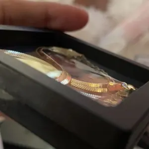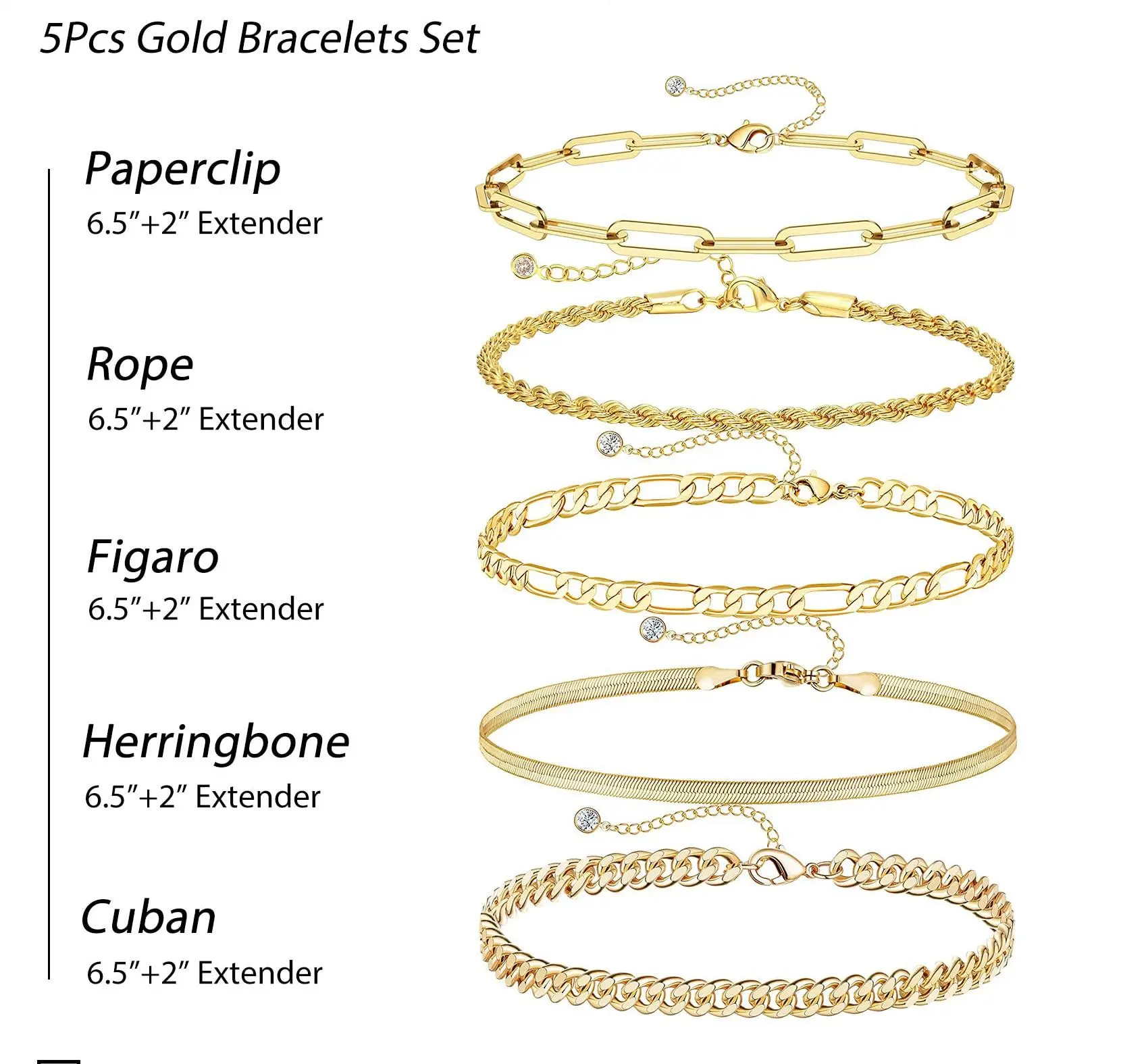 This set of gold bracelets is perfect for layering or wearing solo. It offers a sparkling look and is safe for sensitive skin. Comes in a charming gift box, making it a great present for any occasion.