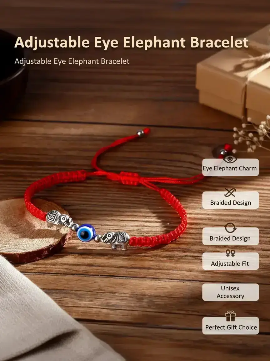Eye Elephant Design Braided Bracelet, Adjustable Trendy Stack Bangle for Women & Men, Party, Daily Clothing Decor, Trendy All-match & Exquisite Jewelry for Birthday Gift, Gifts for Her, Adjustable Slider Bracelets, Stackable Bracelets, Fashion Bracelets