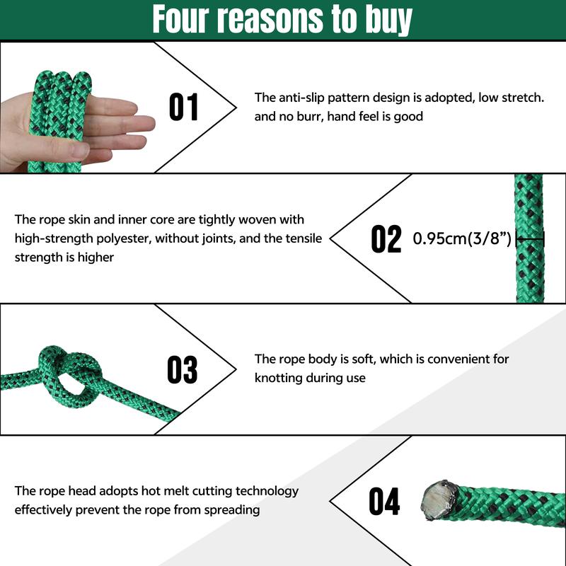 ·【Application】-It has various usages, you can cut it to different length for your requirement. Ideal for halyard, arborist rigging rope, sailboat weathered line, tree work, camping, climbing, swings bed, etc.