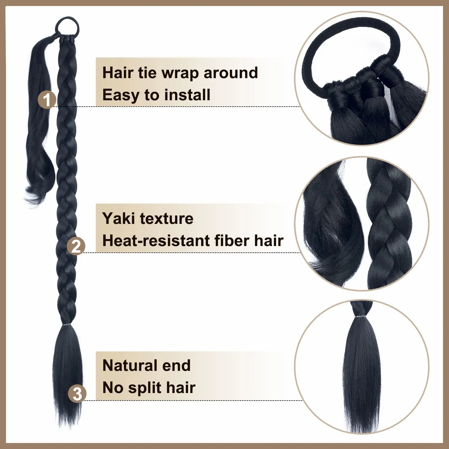 ·【2PCS Braided Ponytail】:Package included: 2PCS Long Braided Ponytail. Length: 32 inches, Weight: 140g/4.9oz each. The latest braided ponytail hair extensions give you a sleek look, Braids add glamour to any hairstyle, and when fused with a ponytail, you get a completely new look in an instant.
