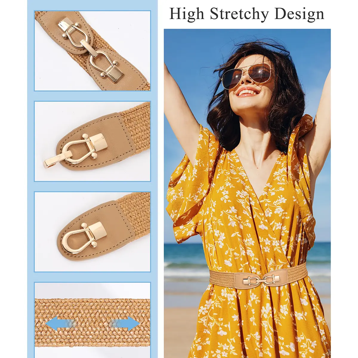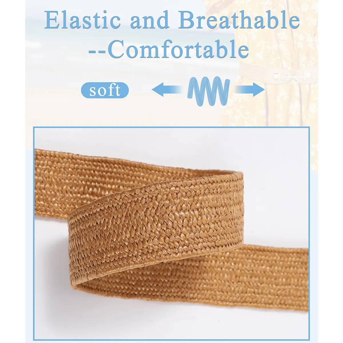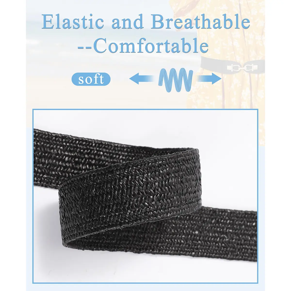 【High Stretch Design】: Women's Straw Elastic Belt is made of high elasticity and non-porous design, which not only makes you feel comfortable but also shapes your waist; the length can be adjusted according to the actual waist of each person, 3 sizes are available: Length: 27.5 in(70 cm)-Waist Size 23"-26";Length: 31.5 in(80 cm)-Waist Size 27"-31";Length: 35.4in(90 cm)-Waist Size 32"-36"