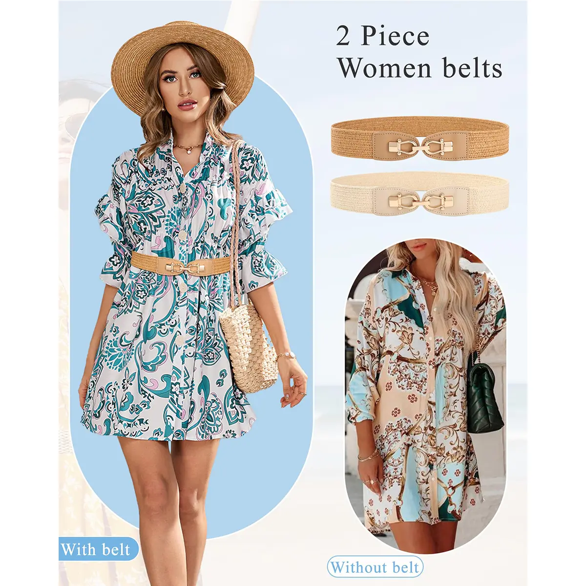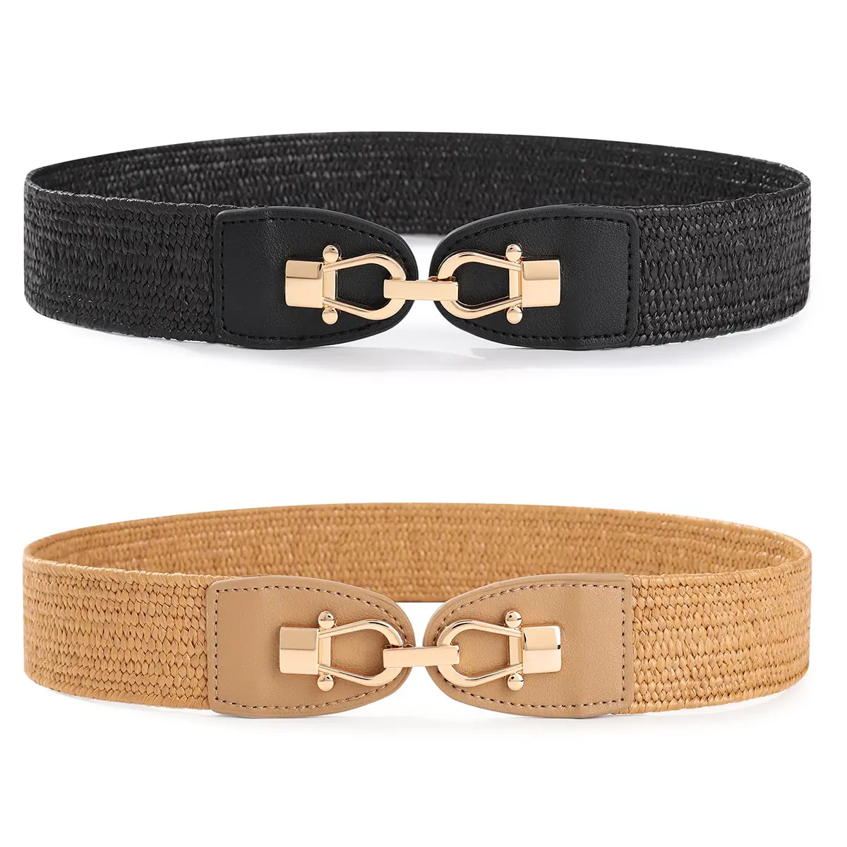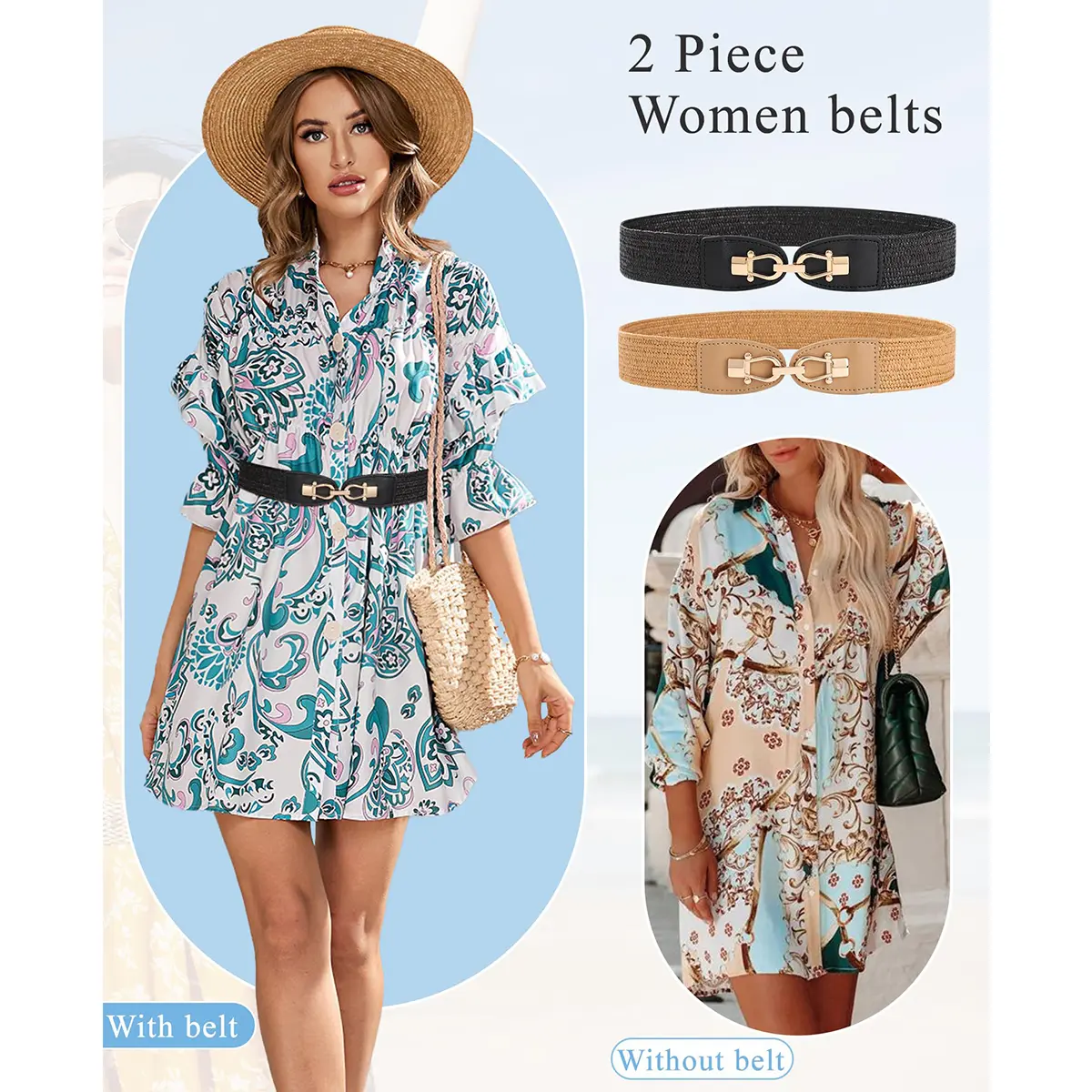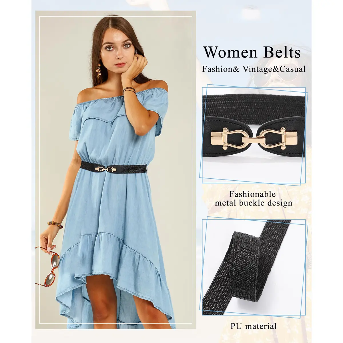 【High Stretch Design】: Women's Straw Elastic Belt is made of high elasticity and non-porous design, which not only makes you feel comfortable but also shapes your waist; the length can be adjusted according to the actual waist of each person, 3 sizes are available: Length: 27.5 in(70 cm)-Waist Size 23"-26";Length: 31.5 in(80 cm)-Waist Size 27"-31";Length: 35.4in(90 cm)-Waist Size 32"-36"