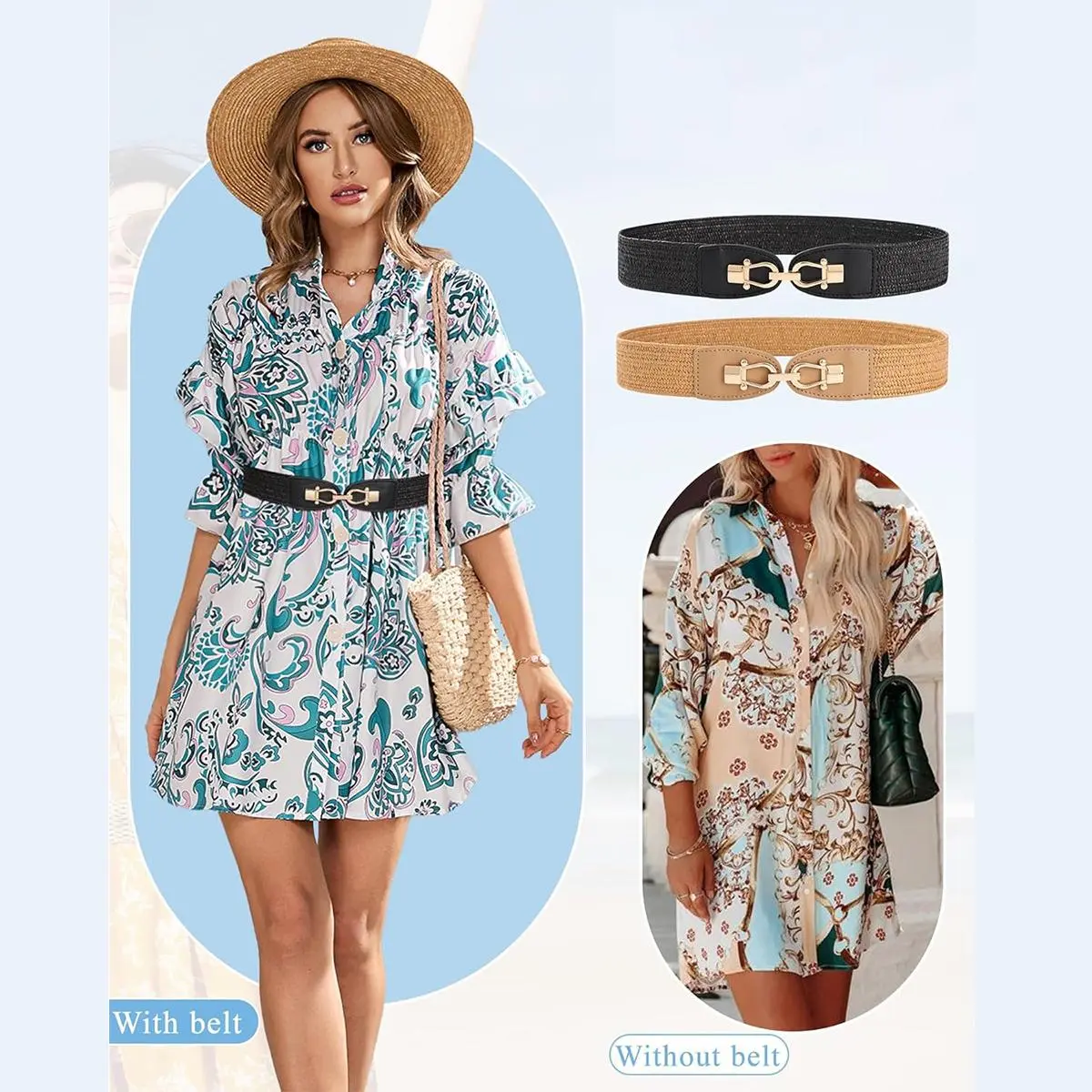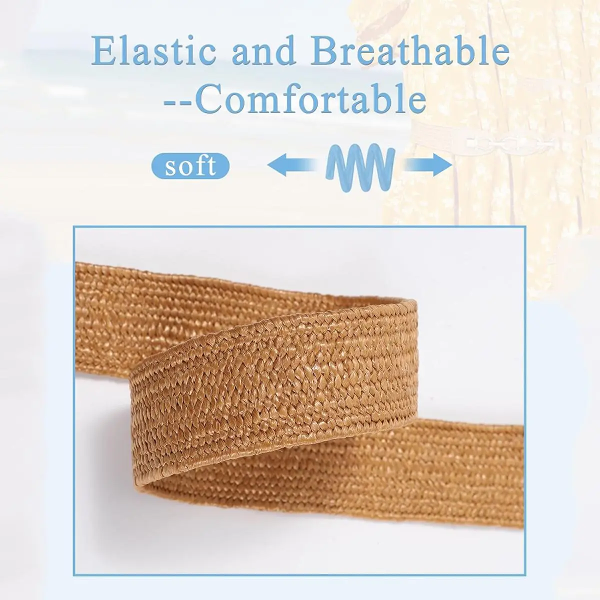 【High Stretch Design】: Women's Straw Elastic Belt is made of high elasticity and non-porous design, which not only makes you feel comfortable but also shapes your waist; the length can be adjusted according to the actual waist of each person,