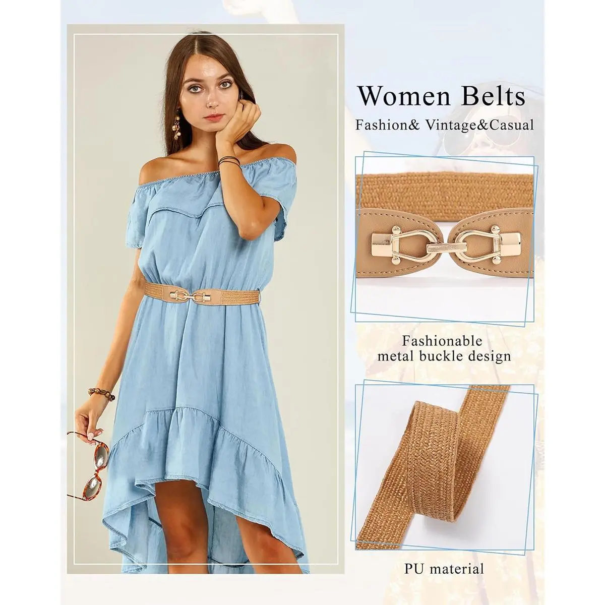 【Fashionable and Easy to Wear】Compared with others, our metal buckles are interlocking designs, allowing you to buckle or take them off in one second; Gold alloy metal buckle with t End PU, which adds fashion and sophistication to your outfit.