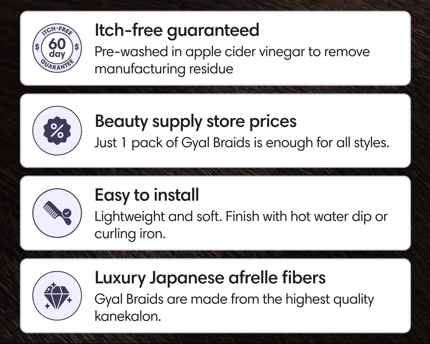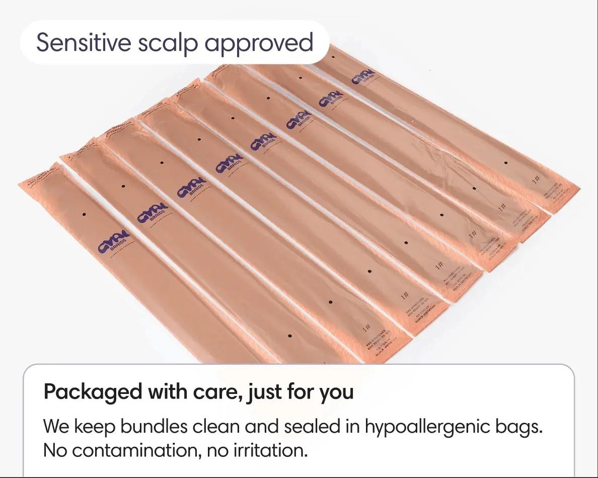 Our unique formula Clarify+ revolutionizes the pre-installation process of synthetic braiding hair. It uses a custom-formulated ACV & Botanicals Rinse. This rinse detoxifies and refreshes, combining the natural cleansing power of apple cider vinegar with nourishing ingredients. It ensures a comfortable, itch-free, and premium braiding experience.