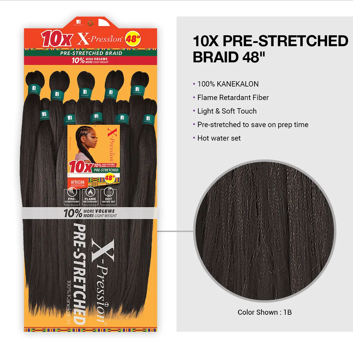 5. Sensationnel Braids XPRESSION 10X Pre-Stretched Braid 48"