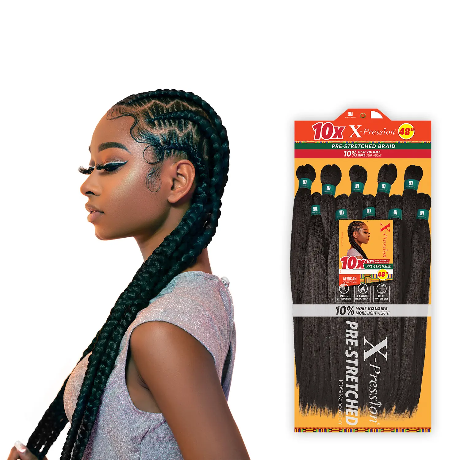 10X X-pression is a pre-stretched version of the current X-Pression item and is prepared to save preparation time when braiding the hair.