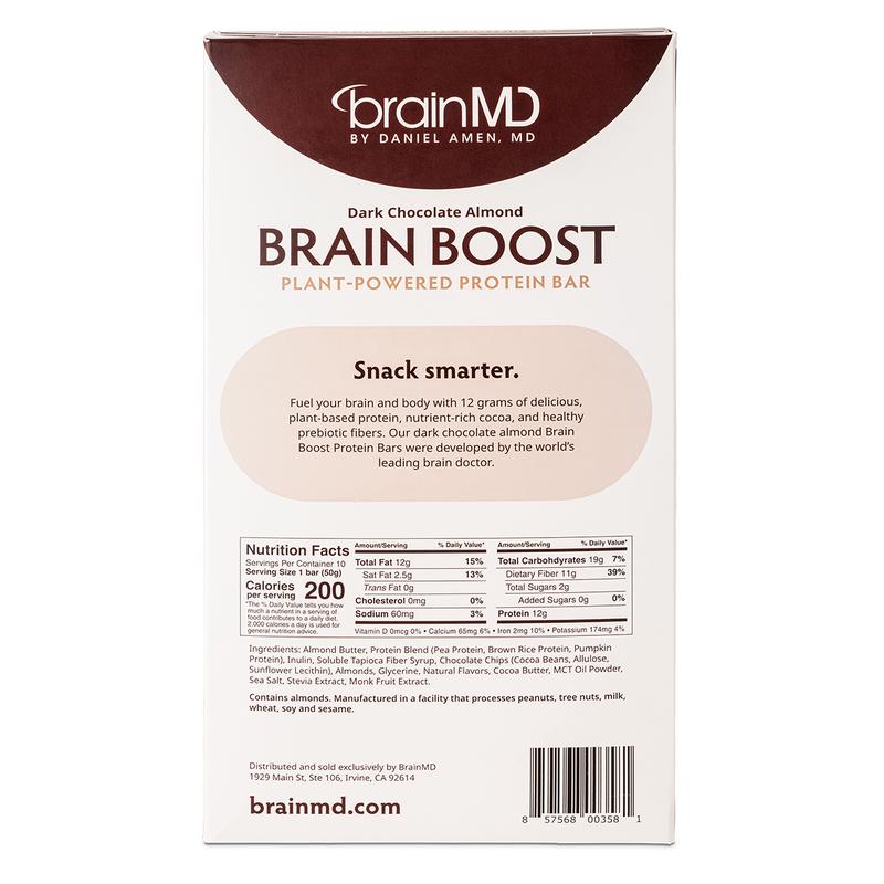 ·Bite into a chewy, nutty, mildly sweet treat with a satisfying crunch from real chocolate chunks. Here’s some of the good stuff you’ll find in each Brain Boost Bar: