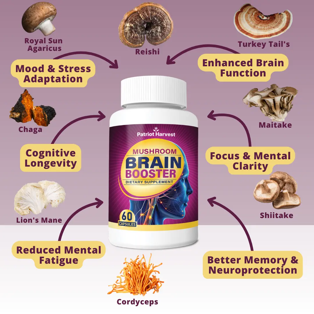 Power up your brain with our Brain Booster, a premium nootropic supplement crafted with nature’s most potent mushrooms. Designed to support mental clarity, focus, energy, and overall cognitive function, this powerhouse blend fuels your brain with adaptogenic and neuroprotective benefits—so you can think sharper, feel more energized, and stay ahead of the game.