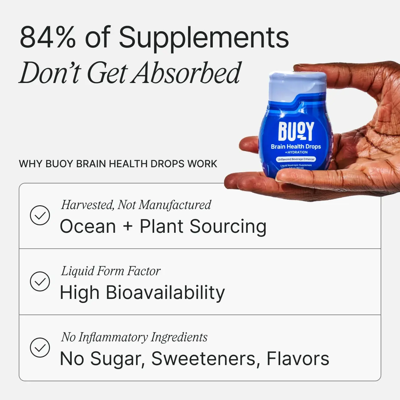 i have alot of chronic illnesses including pots, eds, gastroparesis and migraines. these drops really gacehelping improving my focus, decrease my migraines and also helping with my brain fog. i love these so much and thank you to buoy for creating wonderful products like these