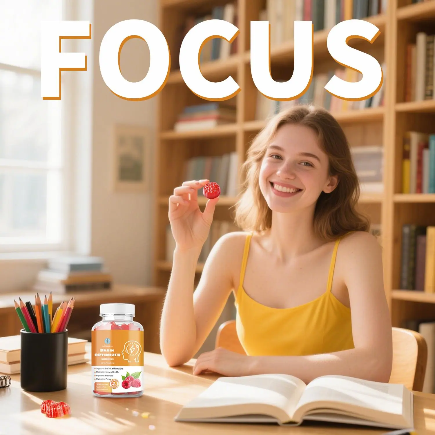 Brain Optimizer Gummies | Memory, Focus & Attention Support | Cognitive Health Supplement with Magnesium, Omega 3, Ashwagandha | 90 Count, Raspberry Flavor