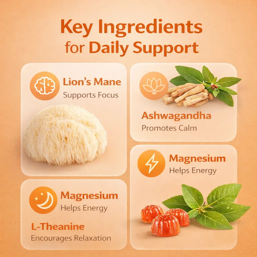 Vitamin,Ashwagandha,Caffeine,Omega 3,Bacopa Monnieri