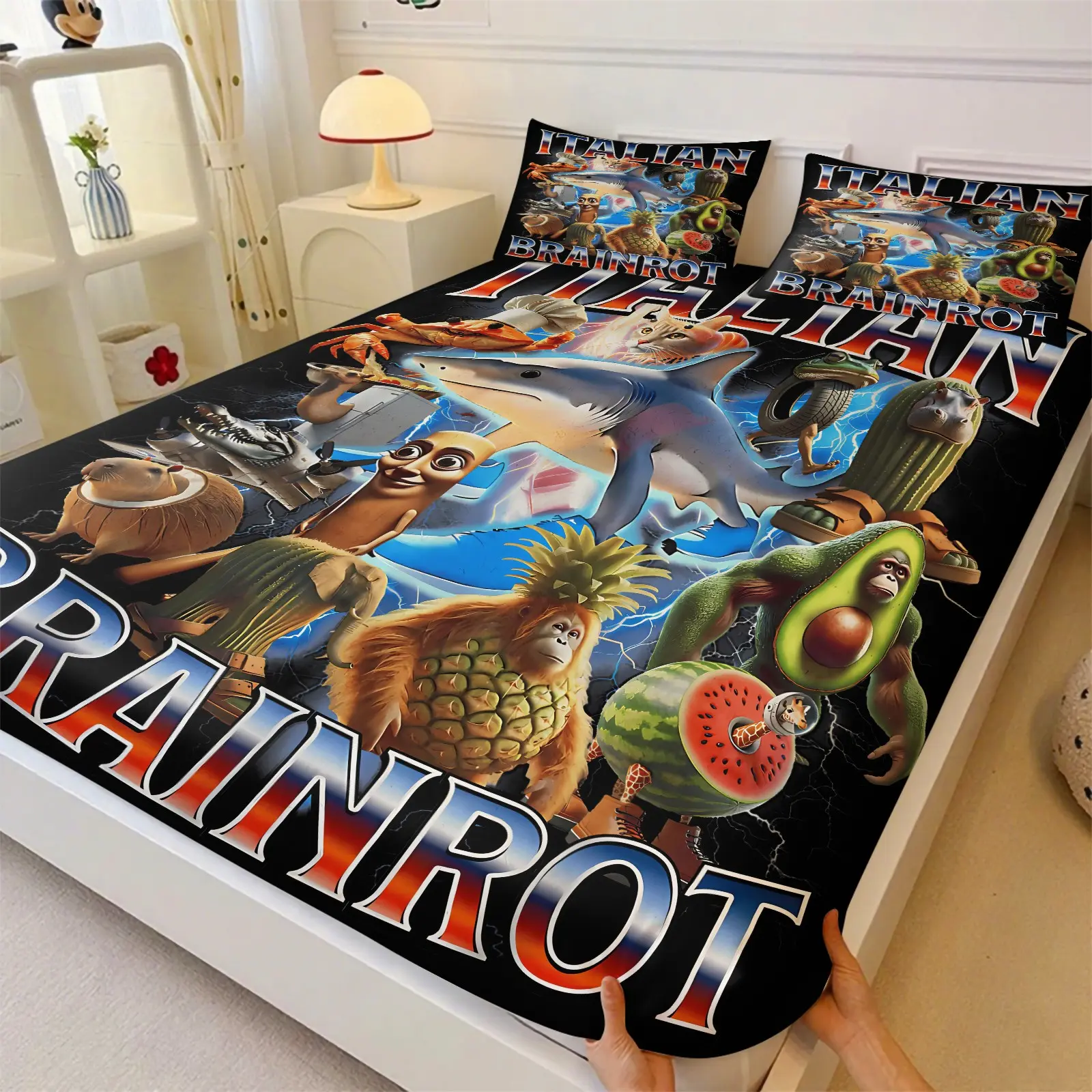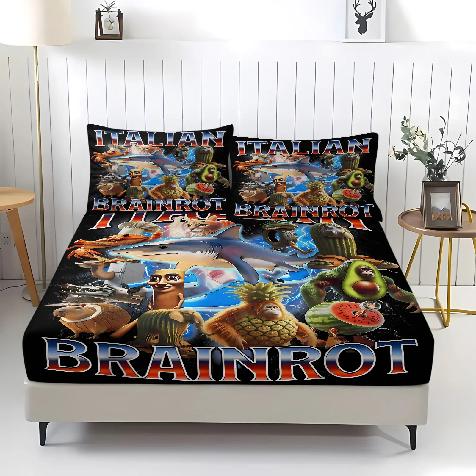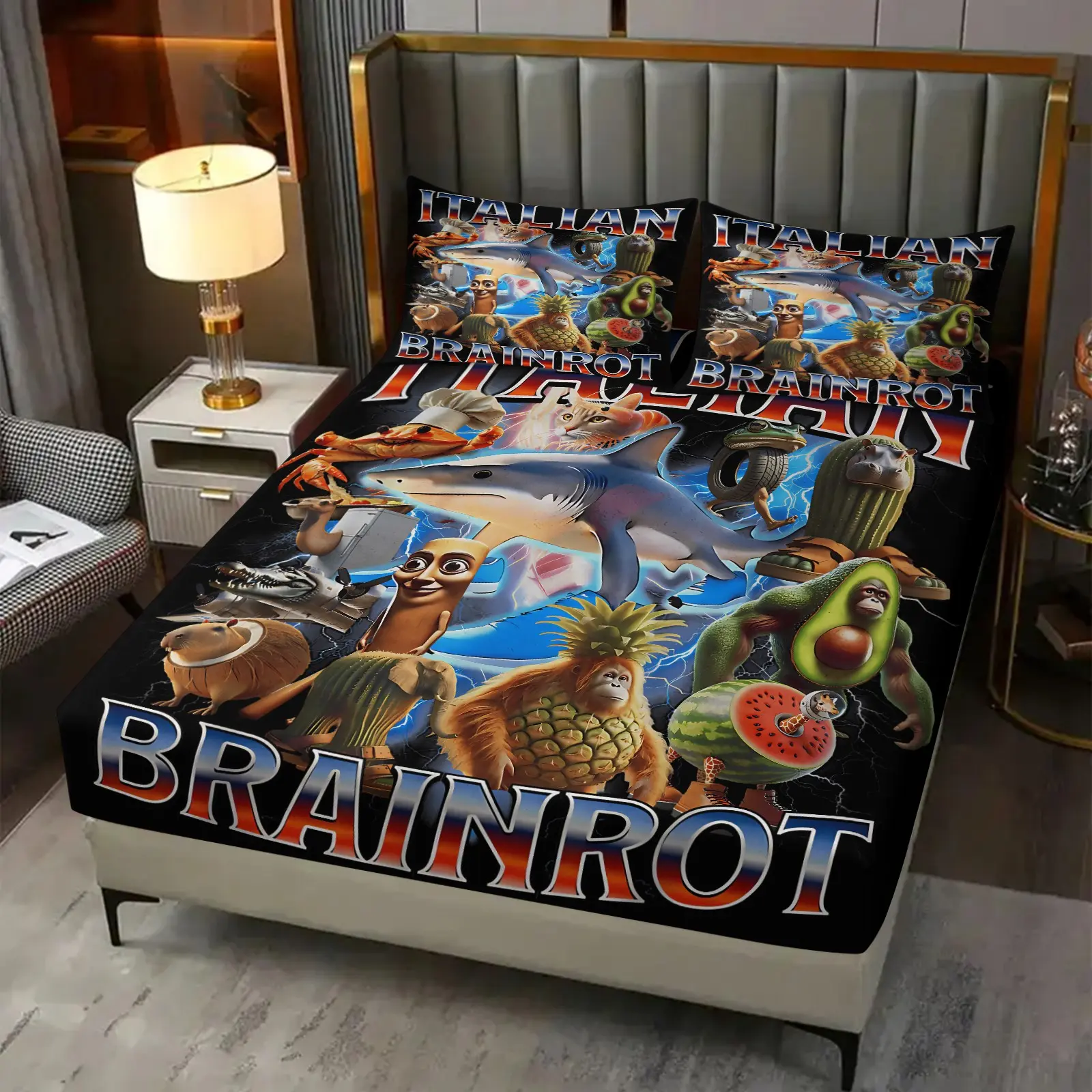 3-Piece Set Of Brain Rot Patterned Bed Sheets, Including 1 Bed Sheet And 2 Pillowcases, Comfortable Bedding, Non Slip Suitable For Bedrooms, Suitable For Gifts For Teenagers And Adults