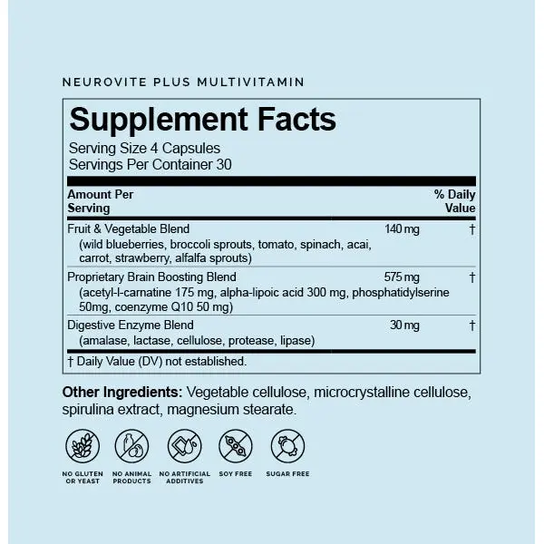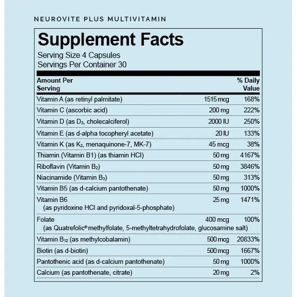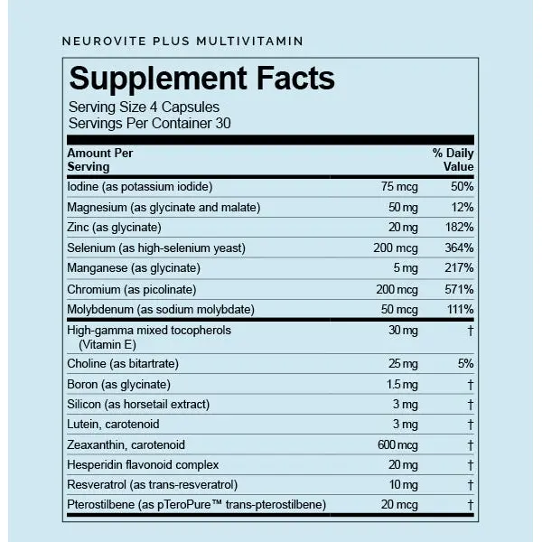 ·Neurovite Plus Multivitamin- Our comprehensive multi-vitamin, multi-mineral with added cognitive support